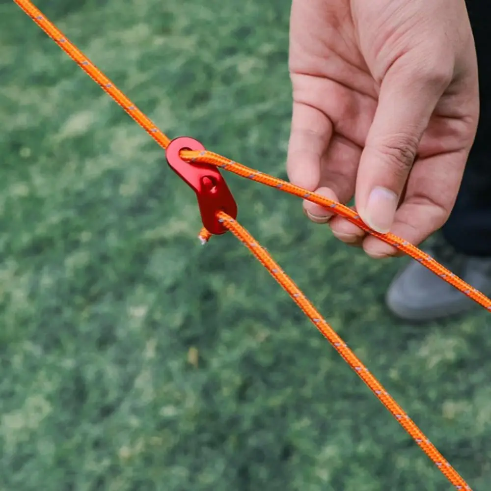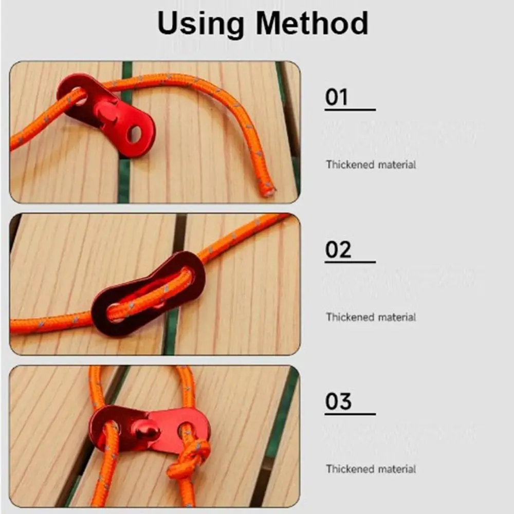 Quantity:1set as your choose Aluminum alloy double eye adjustable buckle, fixed tent canopy and other ropes The length of the rope can be easily adjusted to achieve a suitable degree of tightness. Suitable for ropes with a thickness of less than 6mm.