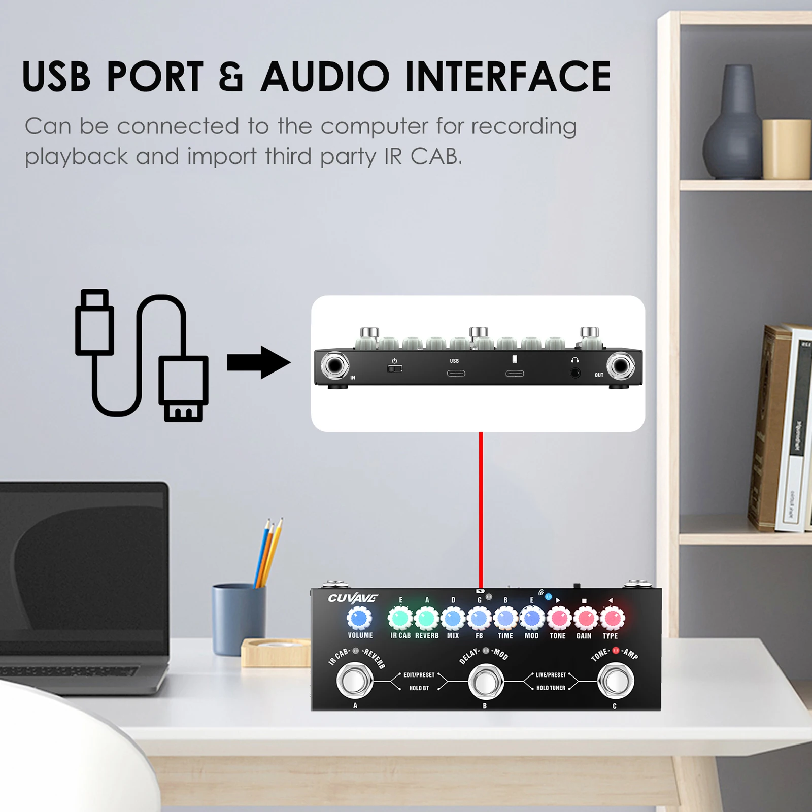 【Puerto USB e interfaz de audio】: Se puede conectar a la computadora para grabar, reproducir e importar CAB IR de terceros.