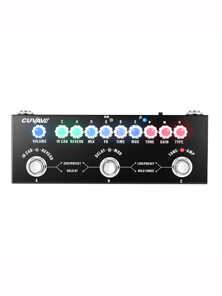 【Pedal de efectos multifuncional】: contiene 9 IR clásicos, 2 efectos de modulación (chorus, cambio de fase), 1 retardo de cinta, 1 efecto de reverberación, 8 modelos de caja IR clásicos y un sintonizador.