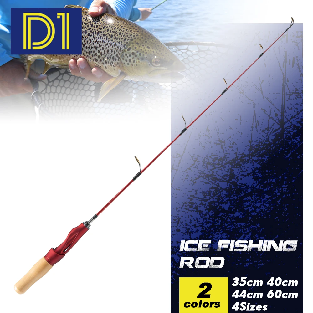 D1 caña de pescar giratoria de hielo, 4 tamaños, 35cm/40cm/44cm/60cm, portátil, 2 secciones, mango de madera para invierno