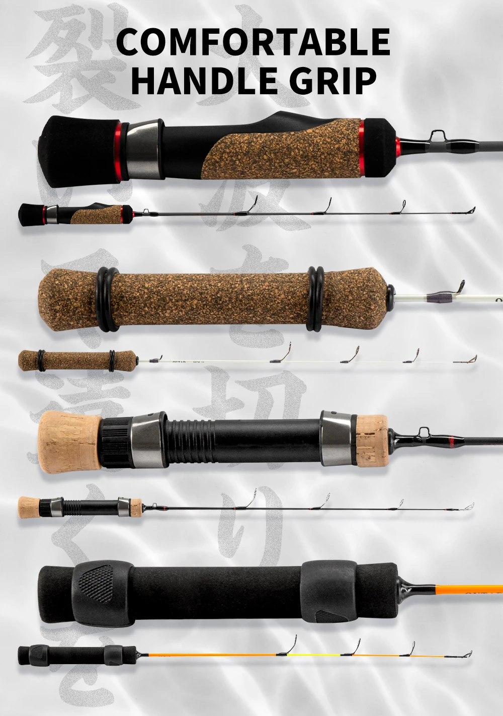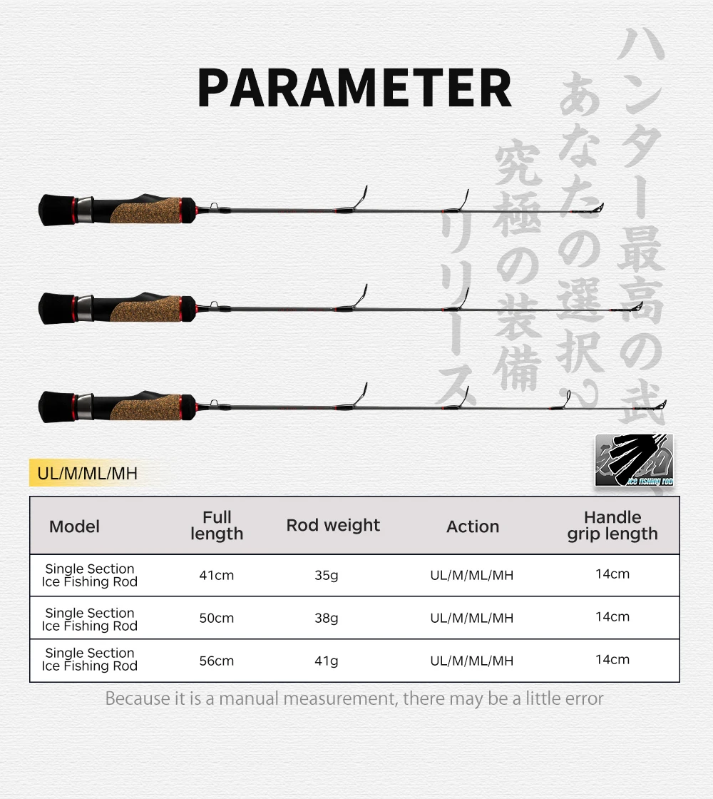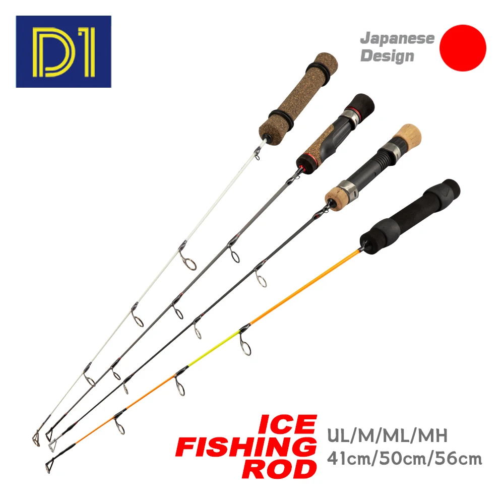 D1 caña de pescar de una sola sección, accesorio giratorio de fibra de carbono con mango de corcho MH/ML/L/UL, para invierno, 41/50/56cm