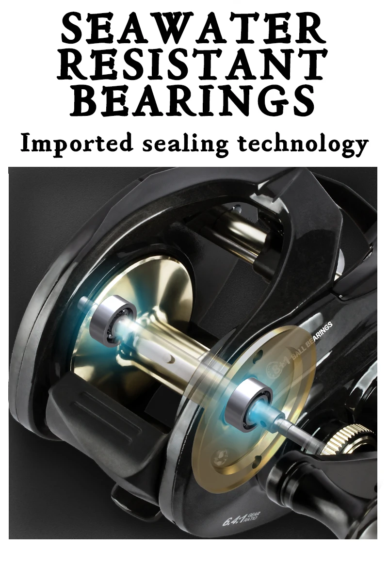 D1-High-Speed-carrete de pesca largo para agua salada, arrastre máximo 8 + 1, Baitcasting, 15KG, relación de transmisión 6,4: 1, SW300