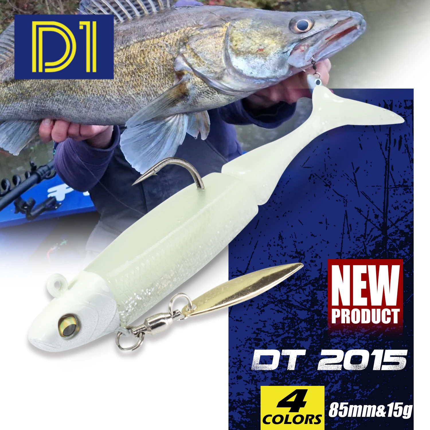 Señuelo de pesca suave D1 Jig Head 85mm 15g Black Minnow Easy Shiner hundimiento cebo de pesca Bass Pike pesca Leurre Souple con lentejuelas