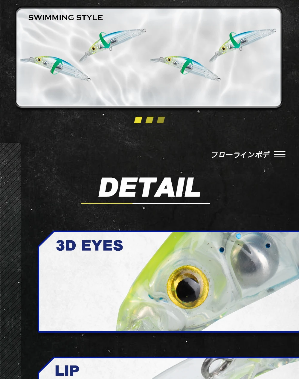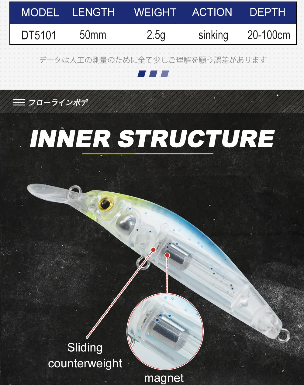 Señuelo de muy buen aspecto... anzuelos afilados de peso medio y de calidad. Los anillos podrían ser más pequeños. sistema de transferencia de peso magnético con forma cilíndrica.