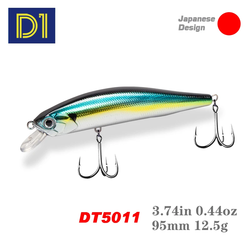 Señuelo de pesca D1 Minnow 95mm 12,5G Wobblers artificiales flotantes cebo duro lubina trucha 2020 aparejos de pesca DT5011