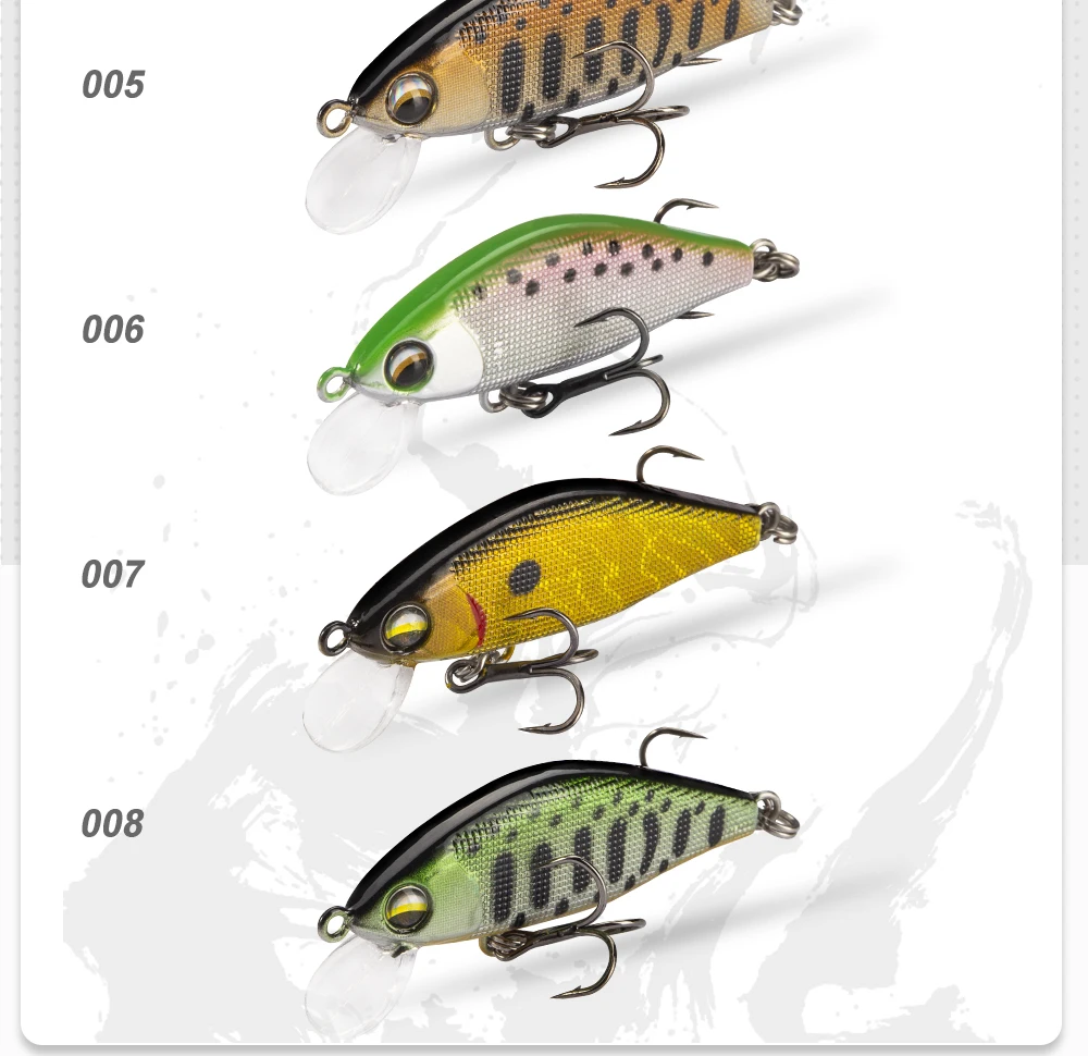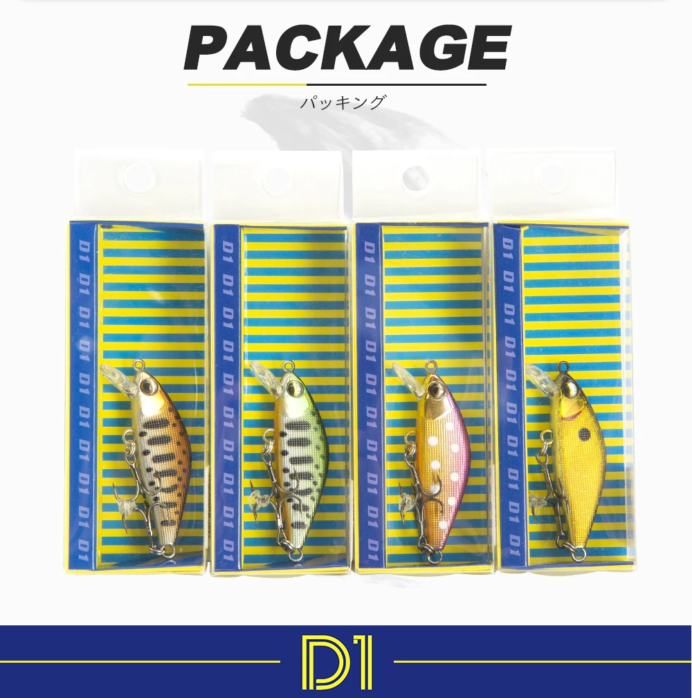 Señuelos de Pesca D1 Minnow, 45mm, 4G, cebos duros de hundimiento, trucha Artificial, Mini Wobblers para Pesca, perca, aparejos de Pesca de corriente de lubina