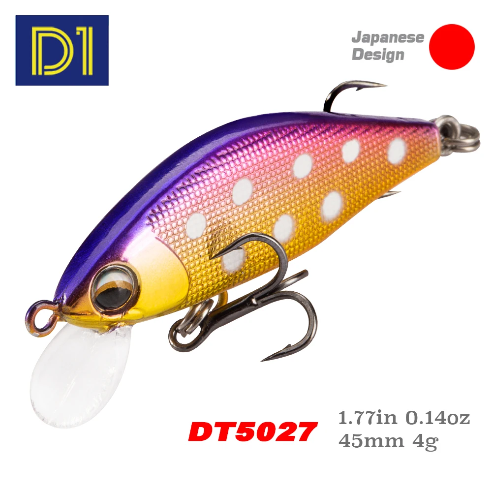 Señuelos de Pesca D1 Minnow, 45mm, 4G, cebos duros de hundimiento, trucha Artificial, Mini Wobblers para Pesca, perca, aparejos de Pesca de corriente de lubina