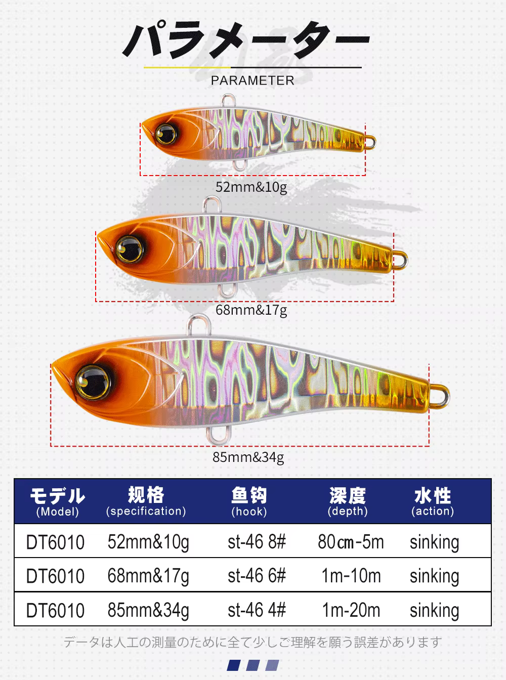 D1 pesca invierno 52mm 10g 68mm 17g 85mm 34g VIB profundidad máxima 20m señuelo láser de alta calidad hundimiento aparejos de agua salada lubina negra