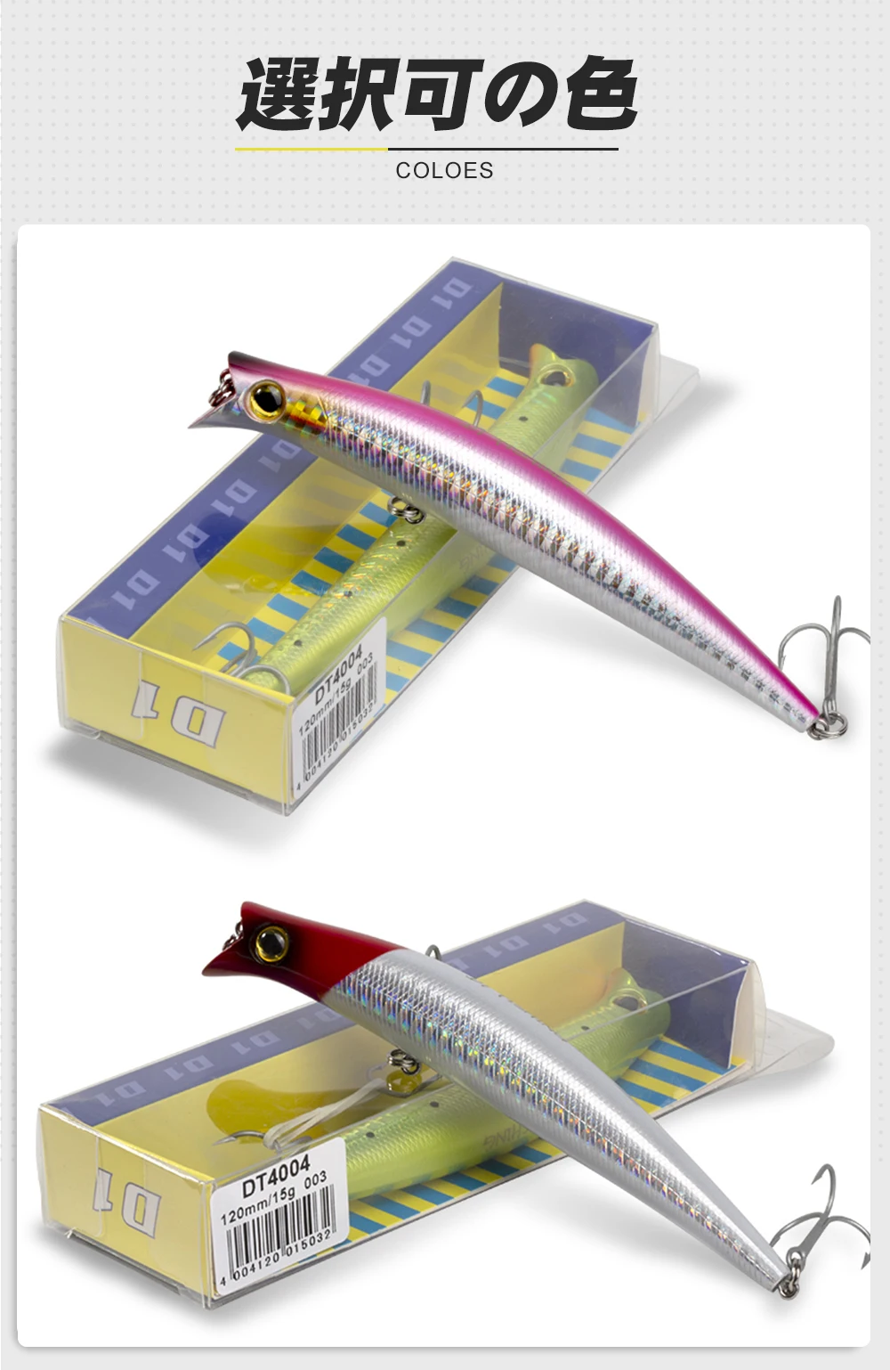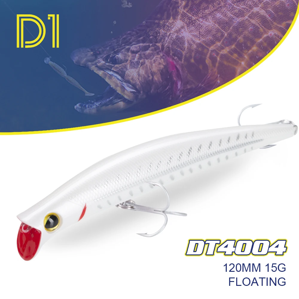 D1 Popper para señuelo de superficie perca, 120mm, 15g, flotante, Minnow, Wobblers rodantes para Lucio, atún, asesino de lubina con aguas poco profundas DT4004