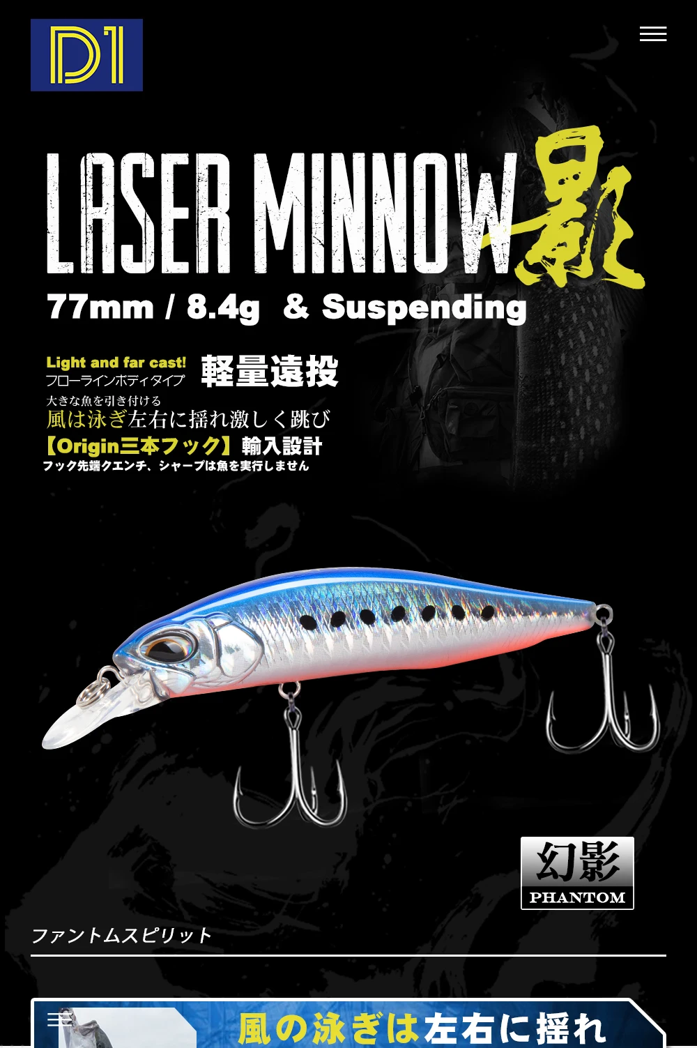 3. Además, el señuelo se puede utilizar como un señuelo tipo sábalo con un dardo de pánico como acción a través de sacudidas de la caña, lo que permite a los pescadores reclamar una mordida desde un bajo en la menor distancia. 4. Este señuelo seguramente ayudará a los pescadores de tierra con un estilo "lineal" de pesca de recuperación directa y un estilo de pesca "puntual" con su acción de dardo de pánico.