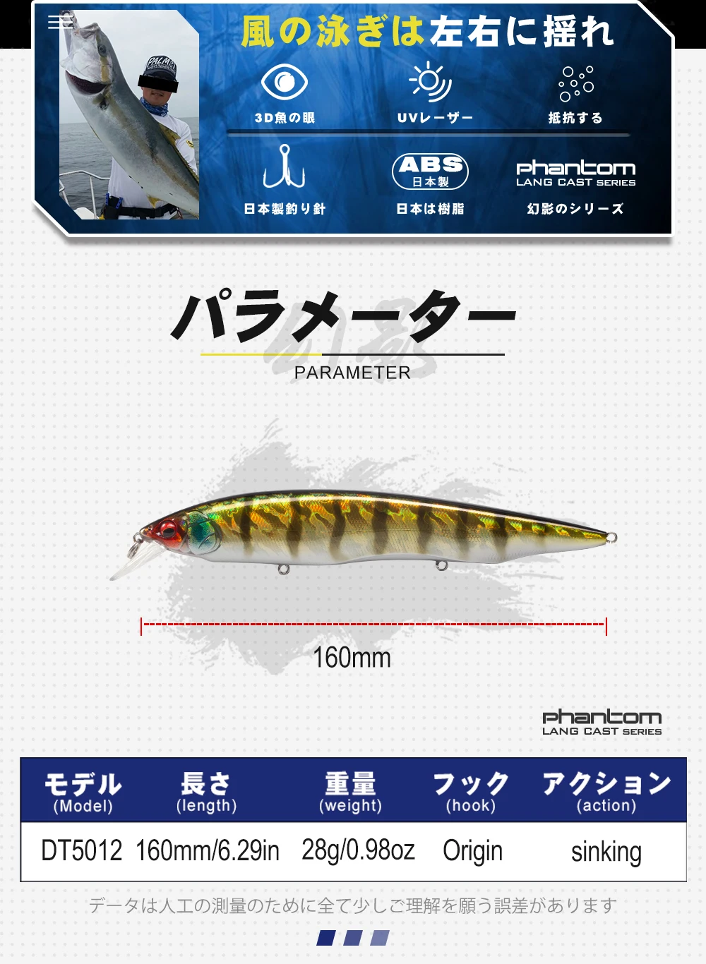 D1 pesca duro Minnow señuelo Kanata ayu Jerkbait Wobblers 160mm 28G hundimiento fundición larga agua salada PescaTackle 2020 para lubina