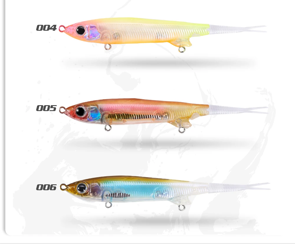 Señuelo de lápiz de pececillo colgante D1 65mm 4G Jerkbait con 2 colas suaves, andador de superficie para lubina, trucha, Pecsa, accesorios de pesca