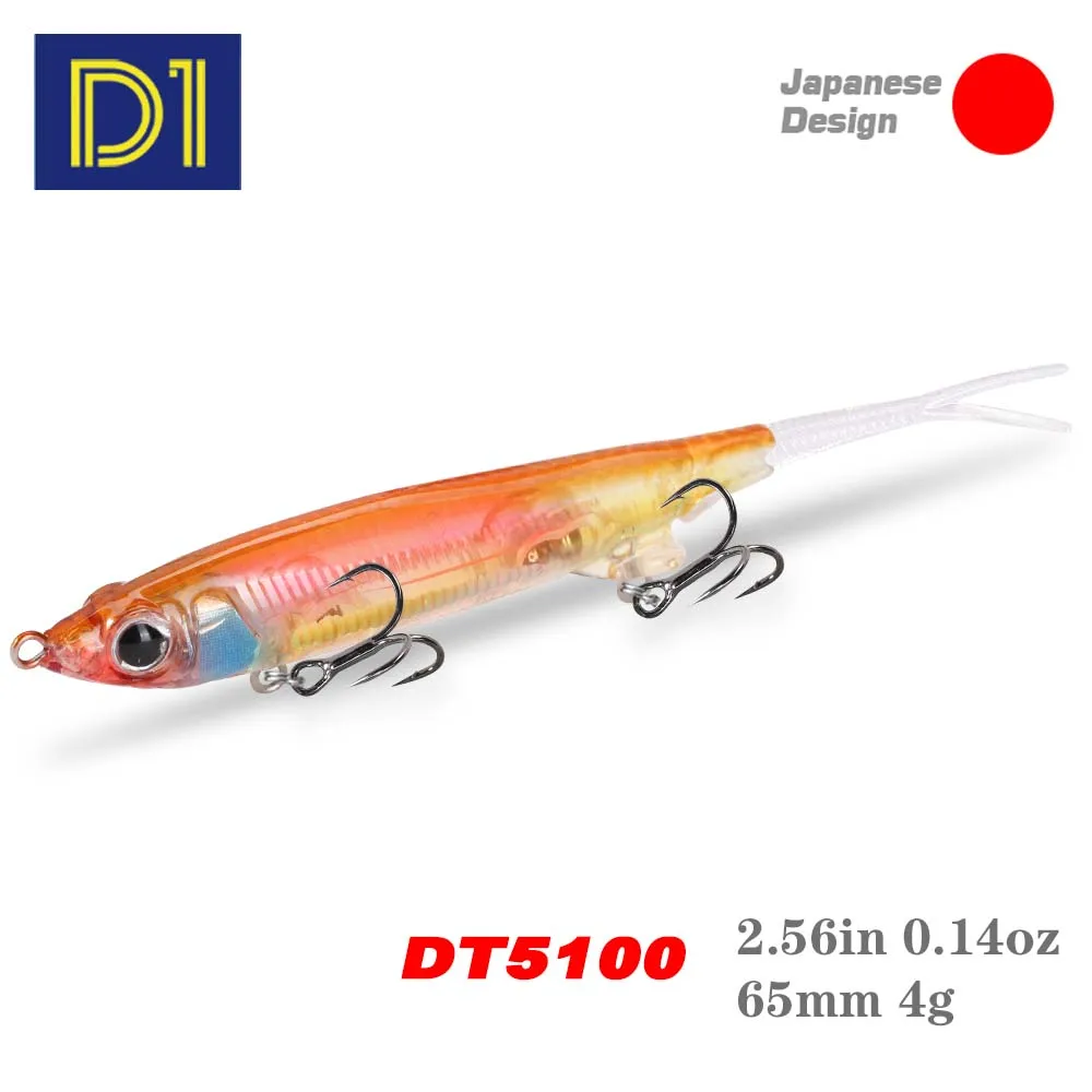Señuelo de lápiz de pececillo colgante D1 65mm 4G Jerkbait con 2 colas suaves, andador de superficie para lubina, trucha, Pecsa, accesorios de pesca