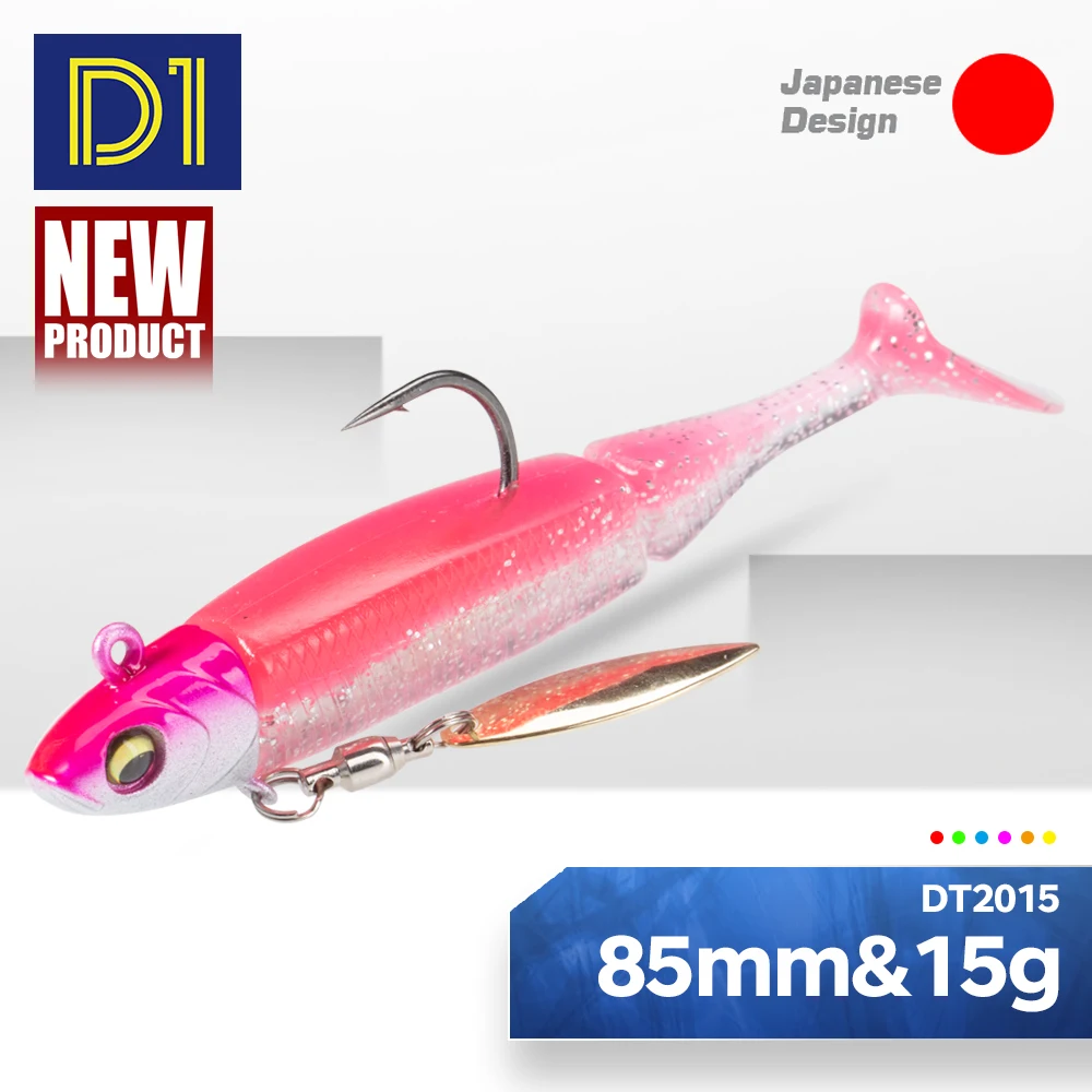 D1 Black Minnow Jig Head señuelo de pesca 85mm/15g T-Tail cebo de silicona suave Wobblers para lubina cuchara giratoria Leurre
