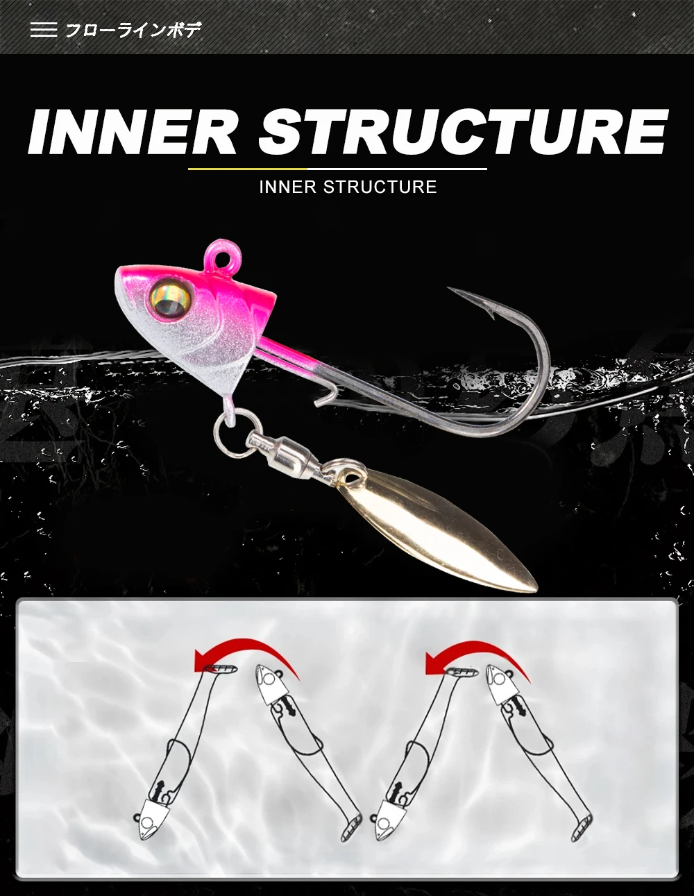 2. El sistema JH le permite girar desde la parte delantera del cuerpo blando. Nadará flexible y se agitará con frecuencia. Más atractivo para los peces.