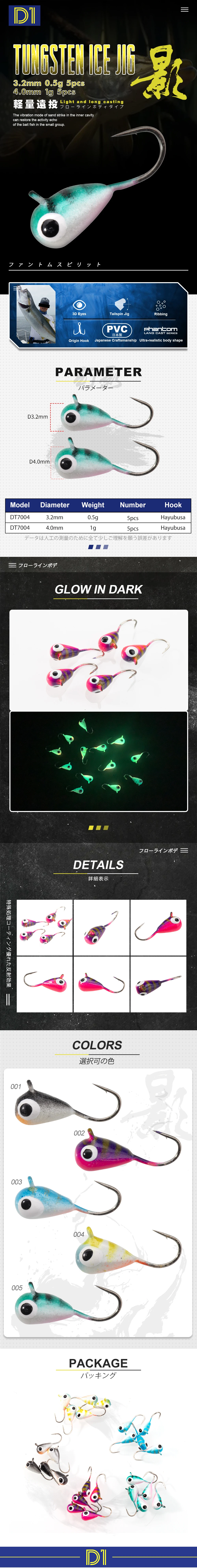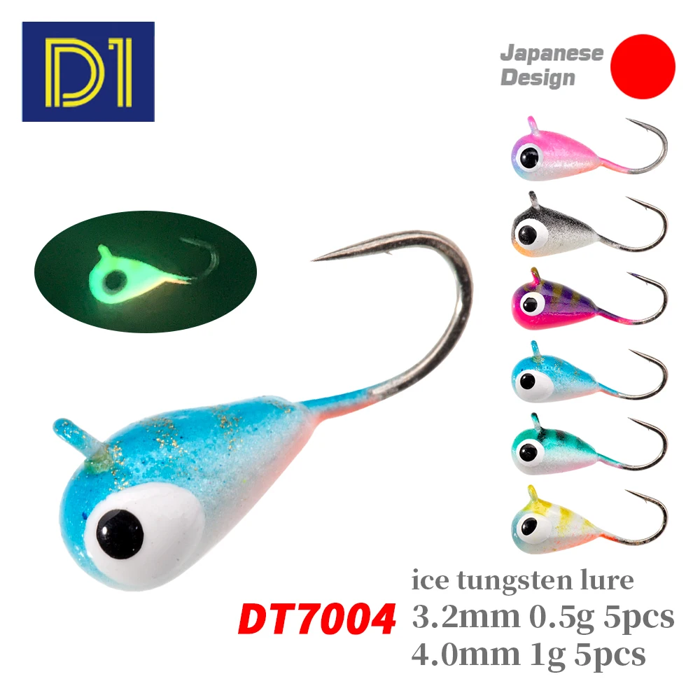 D1-señuelo de pesca en hielo de Metal de tungsteno, d3.2 mm, 0,5g/d4.0 mm, 1g, cebo Vertical luminoso, aparejos de pesca de invierno, 5 unids/bolsa