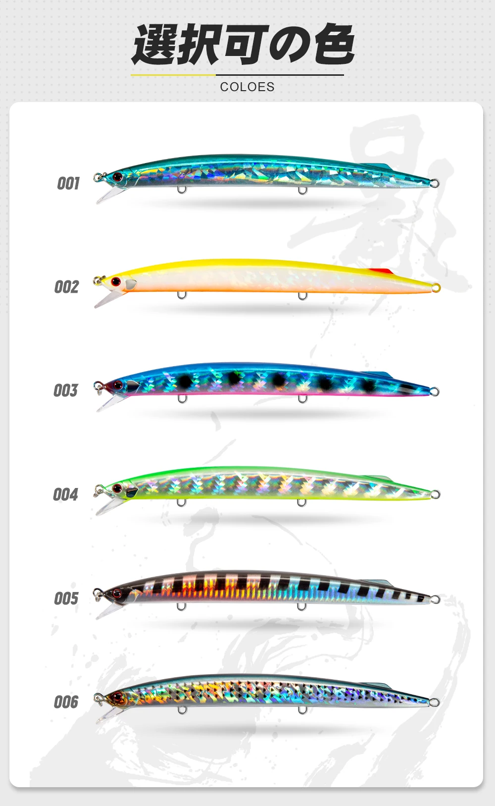 D1 nuevo señuelo de pesca Minnow 190mm 36G curricán Profundidad de hundimiento 0,6-0,9 m cebos duros fundición larga Jerkbait agua de mar para lubina atún