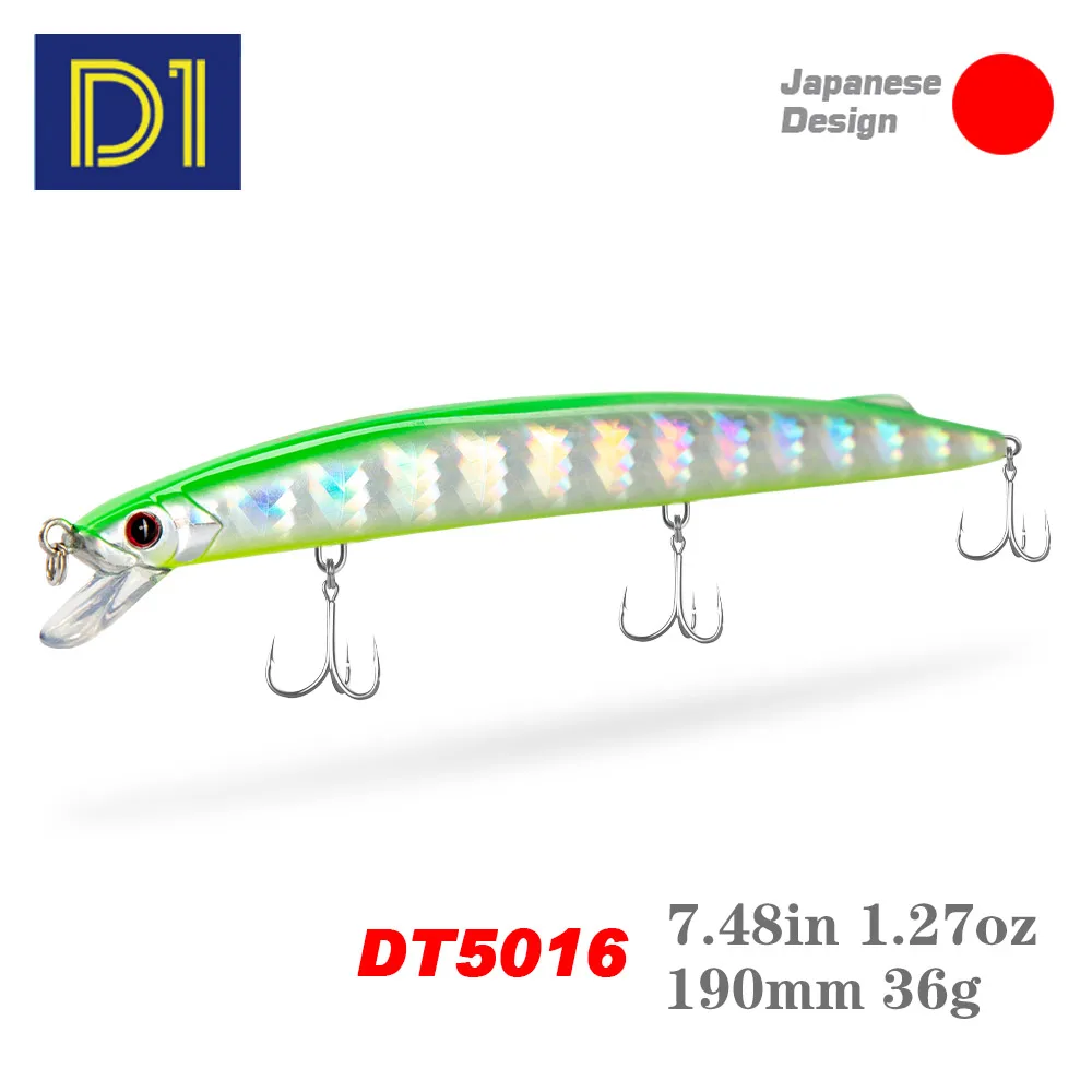 D1 nuevo señuelo de pesca Minnow 190mm 36G curricán Profundidad de hundimiento 0,6-0,9 m cebos duros fundición larga Jerkbait agua de mar para lubina atún