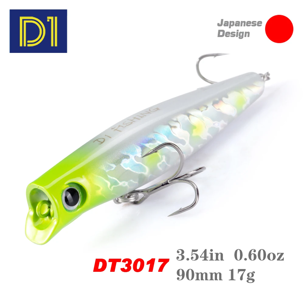 D1-señuelo de pesca Popper de hundimiento lento, 90mm, 17g, de fundición larga, Jerkbait, Crank Wobblers, cebo Artificial duro para agua salada, aparejos de lubina