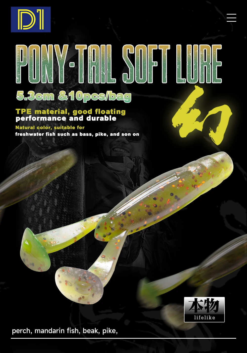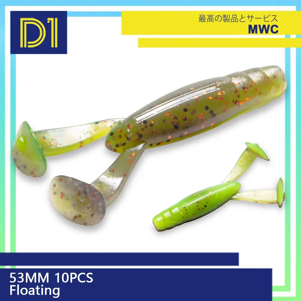 D1-señuelo suave de pesca de carpa, accesorio de 53MM, 2G, 10 piezas, Predator, cebo de agua dulce, leurre souple, jigging Action para Lucio, Pecsa