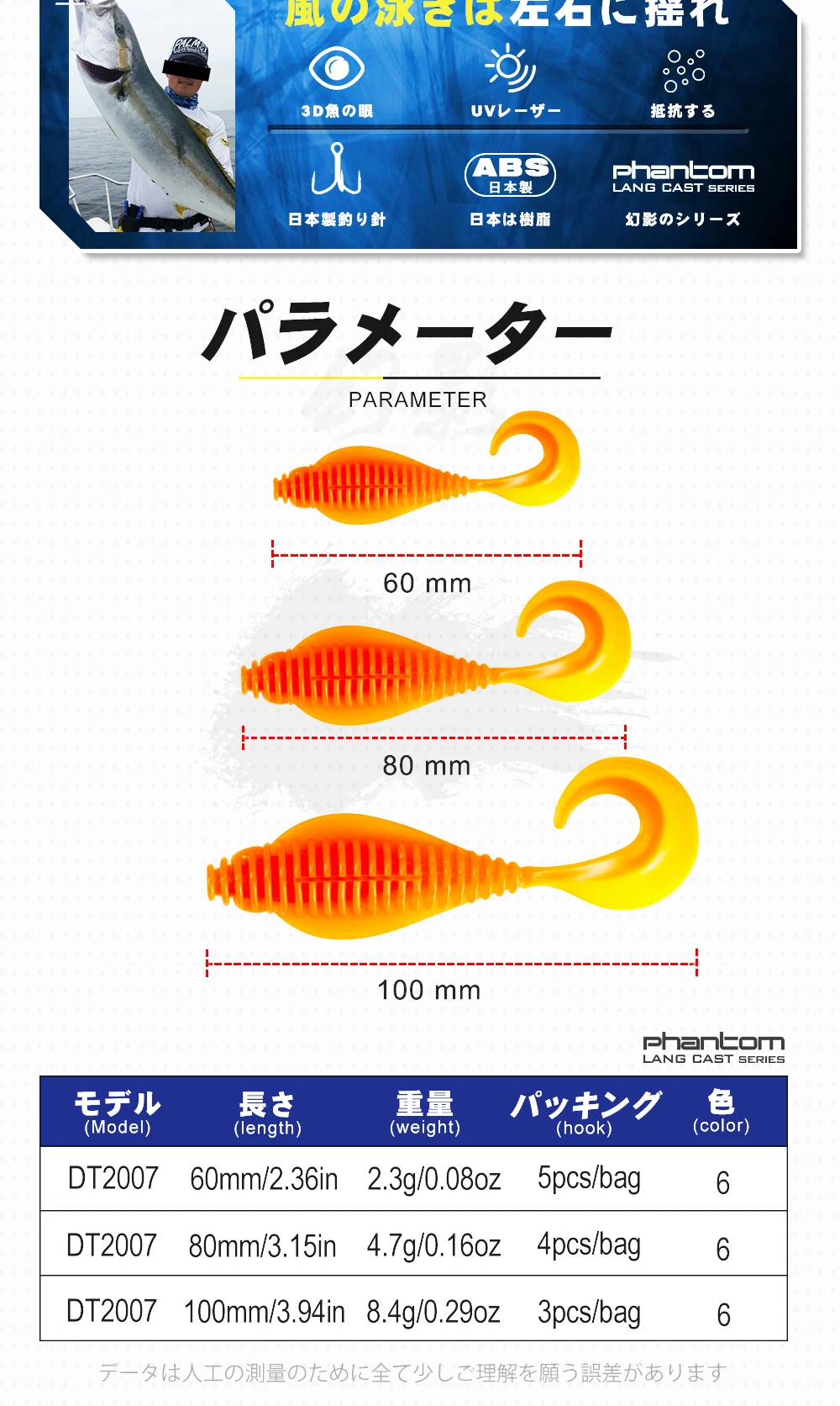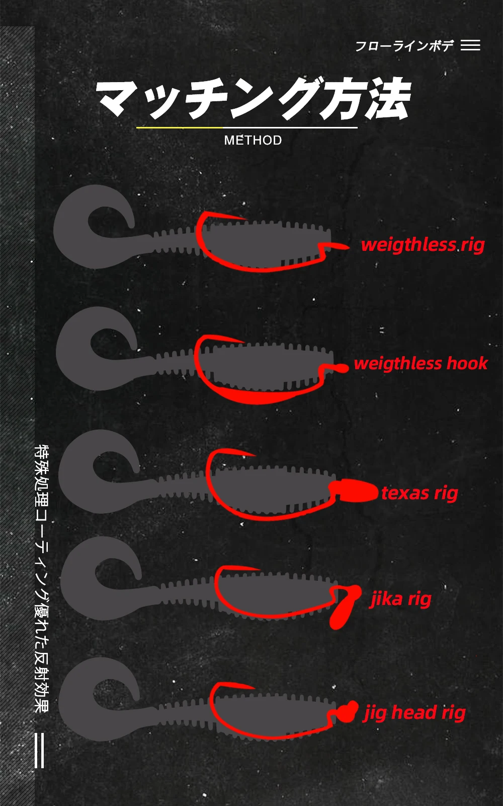 Tres tamaños diferentes, un amplio espectro de colores y simplemente una excelente acción de cola al más mínimo señuelo parecía ser el plato favorito de perca grande, mientras que el pez gato. Tres tamaños son perfectos para atraer Zanders.