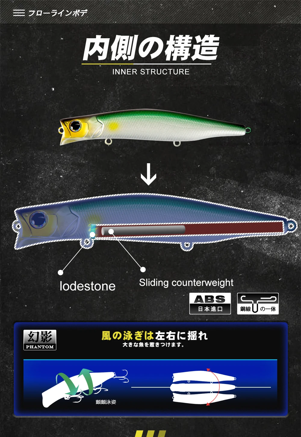 4. El señuelo tiene una copa de dardos abierta de corte grande que produce una acción rodante natural fina en una recuperación lenta a media. A medida que aumenta la velocidad, la acción aumenta y acelera. Adoptando una acción variada para cambiar a una acción de balanceo con algunas diapositivas.