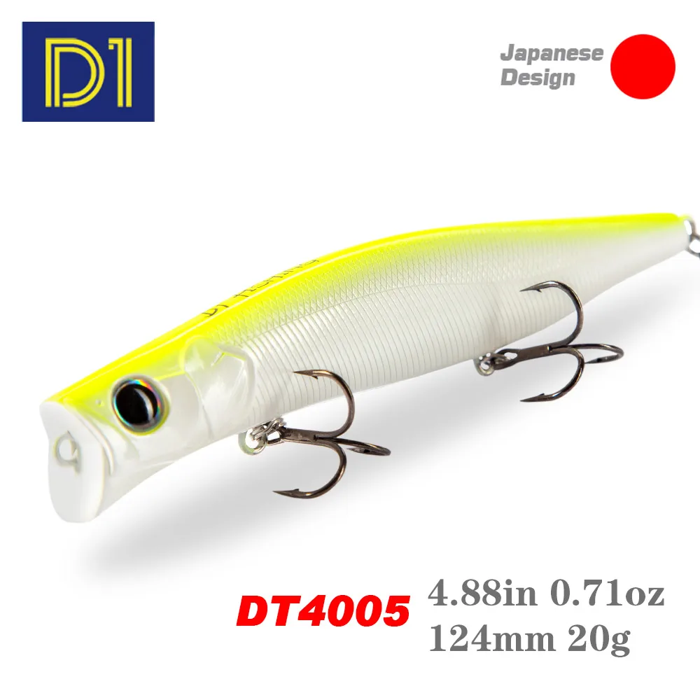 Señuelos de pesca de mar caliente D1, 124mm, 20G, cebo flotante Popper, 15 colores, cebo duro, Wobblers artificiales, aparejos de pesca de plástico