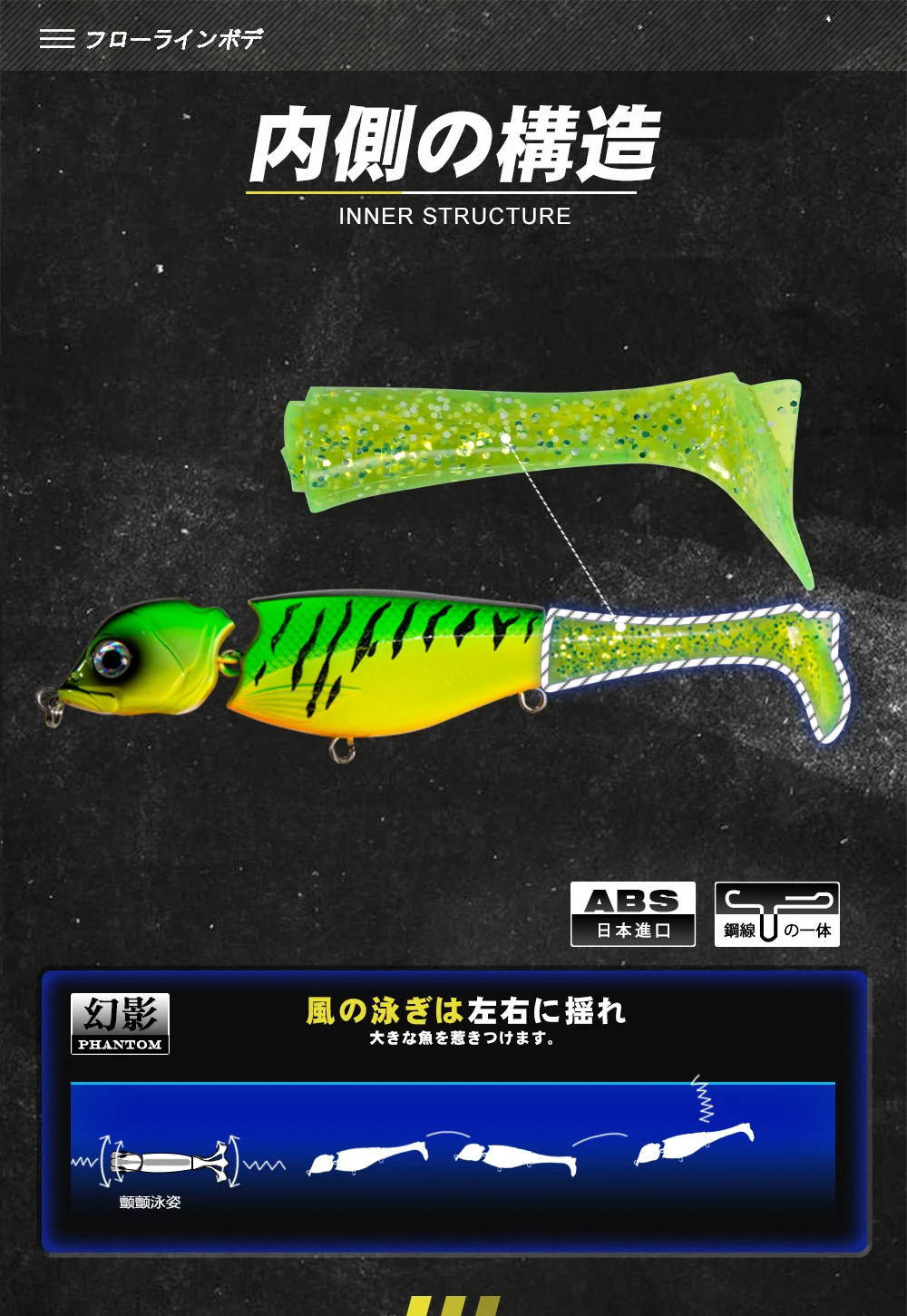 1. Combinando el movimiento de flequillo errático y evasivo con las características tipo pez de la cola de paleta intercambiable fija, el flequillo Shad es un juguete depredador con una acción que ningún otro señuelo puede ofrecer.