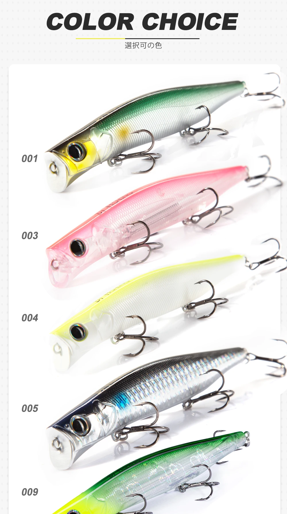 La copa grande y más oscura empuja con fuerza contra el agua, creando una delicada acción de rodadura natural durante velocidades de lenta a media recuperación que atrae incluso la lubina más amarga. Al aumentar la recuperación a velocidad media o alta, la acción variable le permite realizar una acción de deslizamiento de alto perfil sin dejar de incorporar el movimiento de rodadura. Para apuntar a lubinas grandes que se esconden en áreas poco profundas, la profundidad se establece entre 0 y 20 cm. El nuevo sistema de pesas puede reducir el centro de gravedad, impulsando una distancia de lanzamiento increíble y un excelente rendimiento de natación.