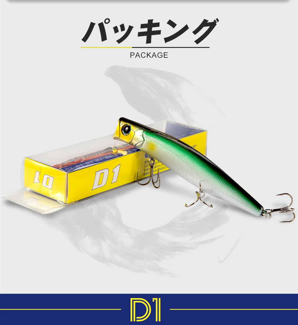 Cebo de superficie flotante D1 Top Wat124F/100F, señuelos de pesca en el mar, Wobblers giratorios de agua salada para Lucio y lubina