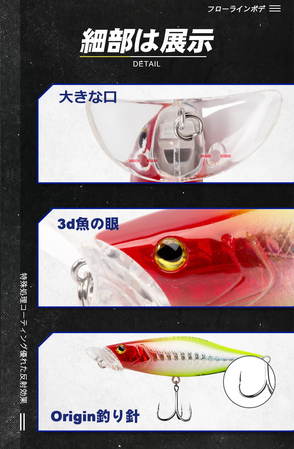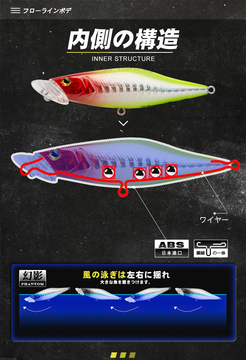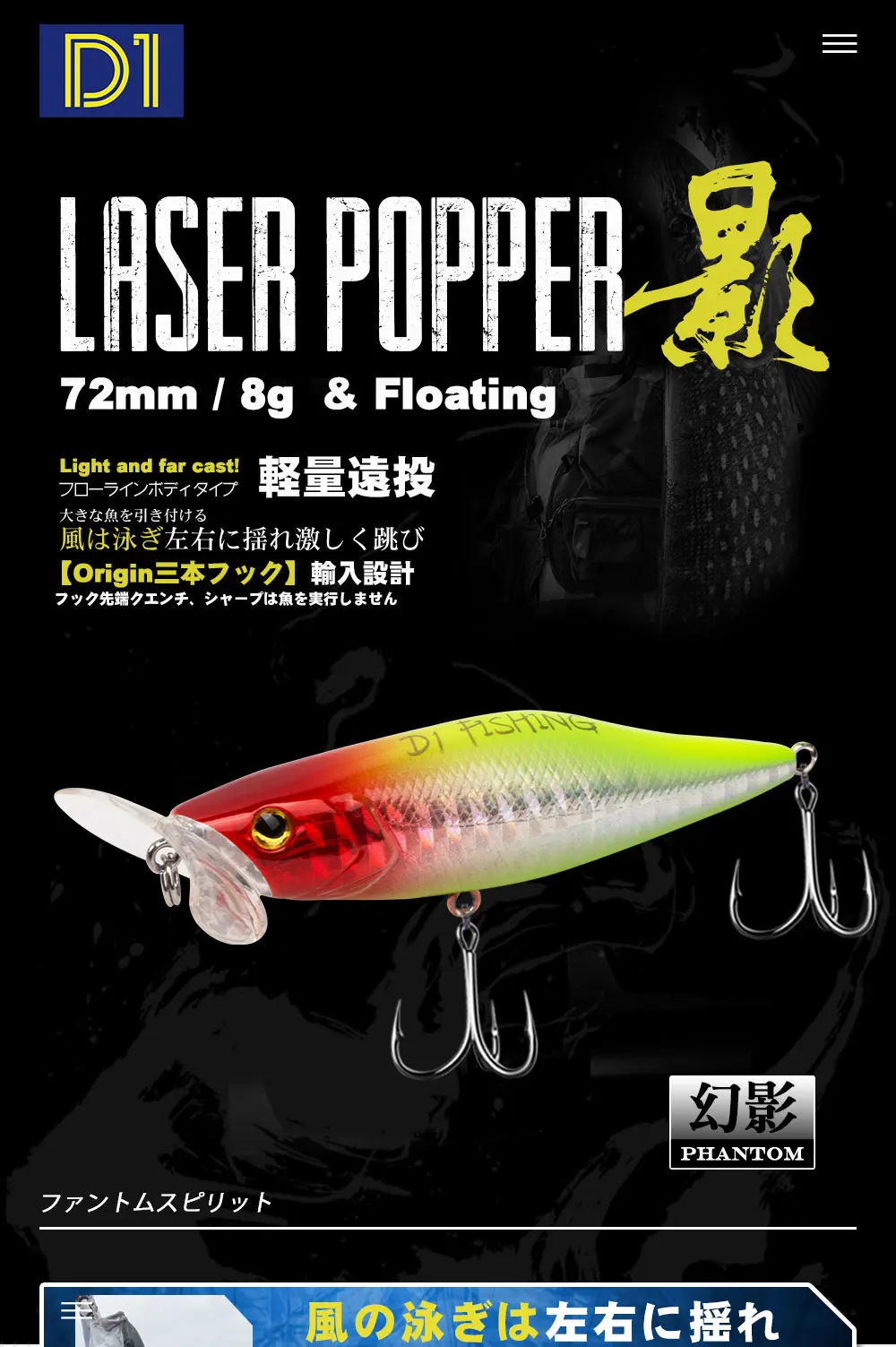 1. Longitud: (72mm)2. Peso: (8g)3. Tipo: flotante4. Categoría: cebos de superficie/oruga