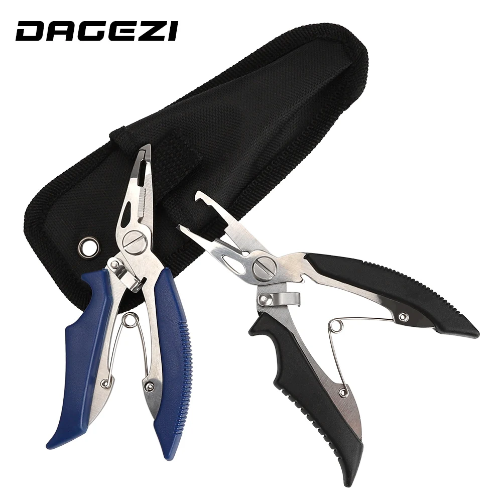 DAGEZI-Alicates de pesca de 2 colores con paquete, tijeras, cortador de línea, quitar gancho, negro/azul, herramienta de aparejos de pesca
