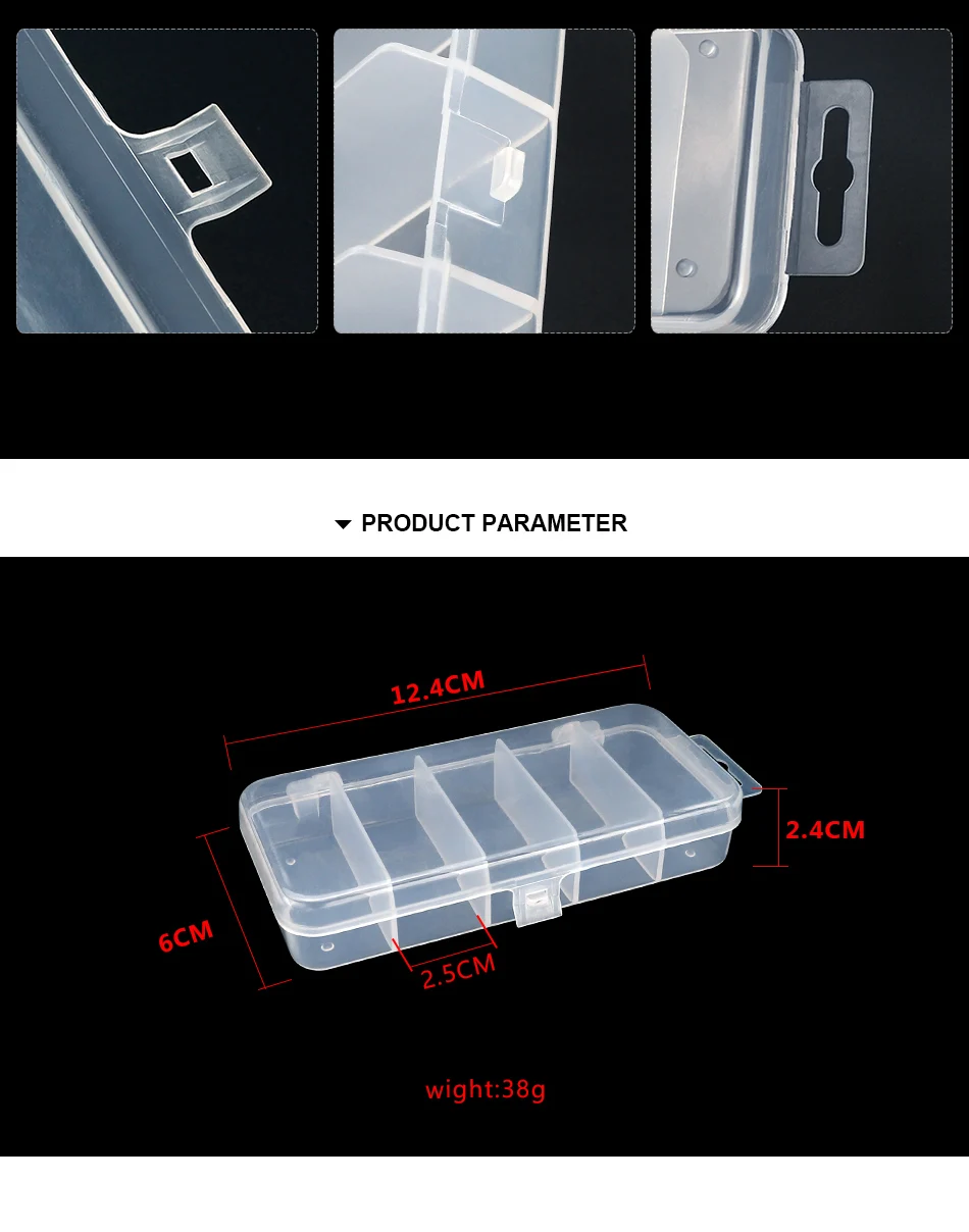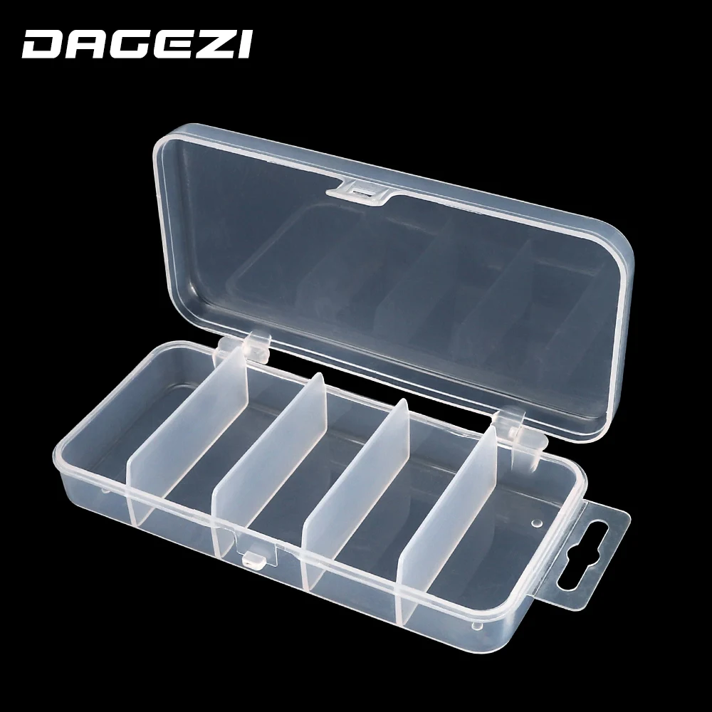 DAGEZI-caja de Pesca de PVC, almacenamiento de señuelos, 5 compartimentos, conector para carpa, 17,6x8,9 cm