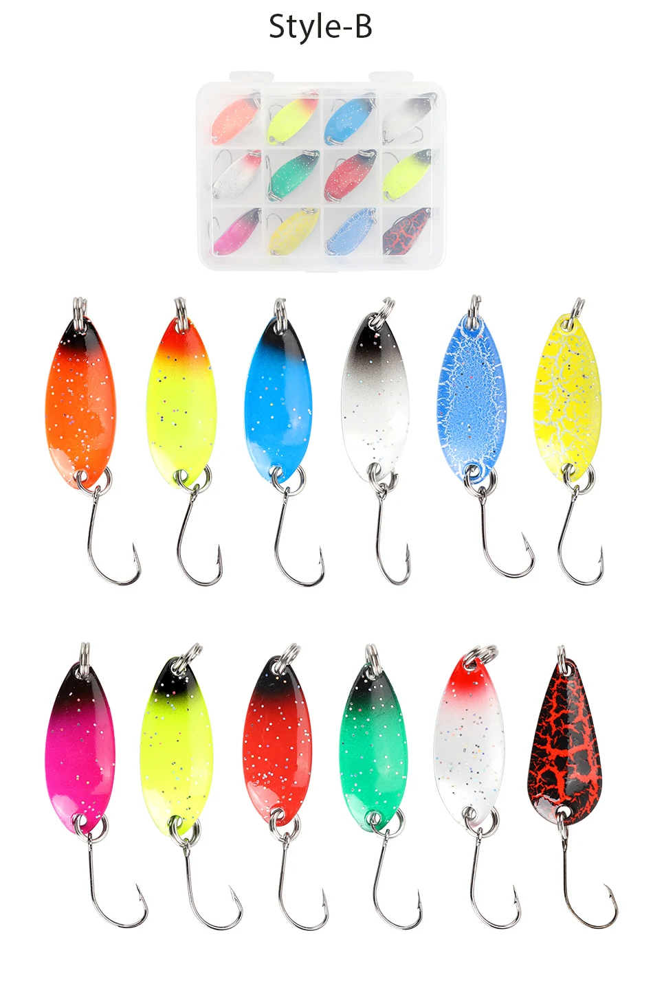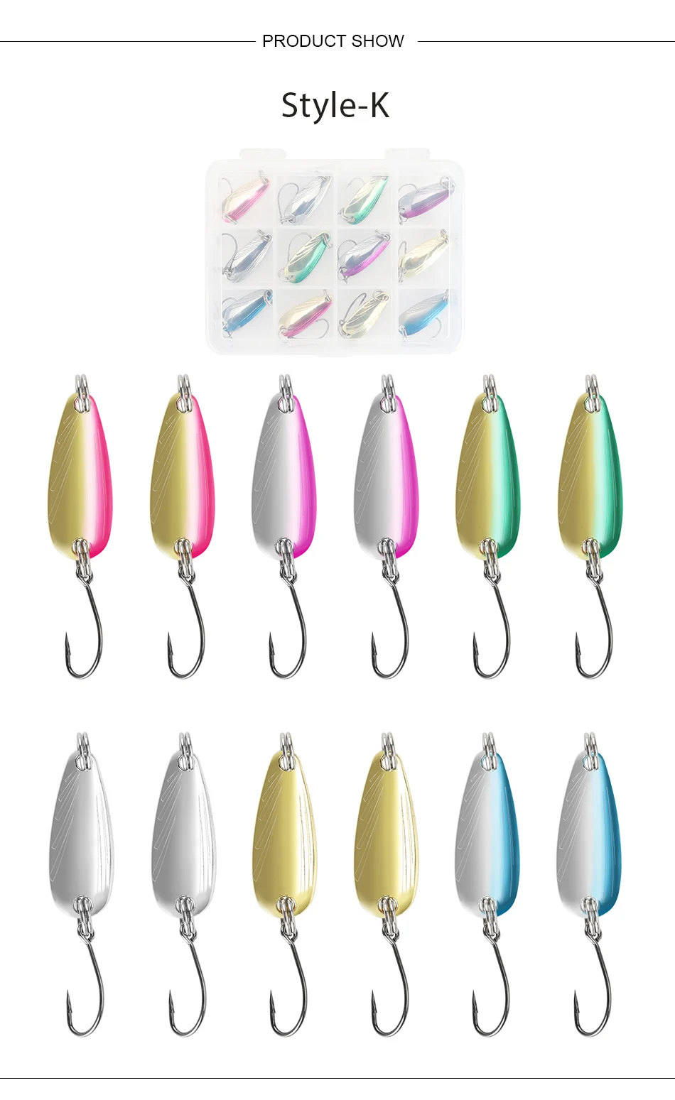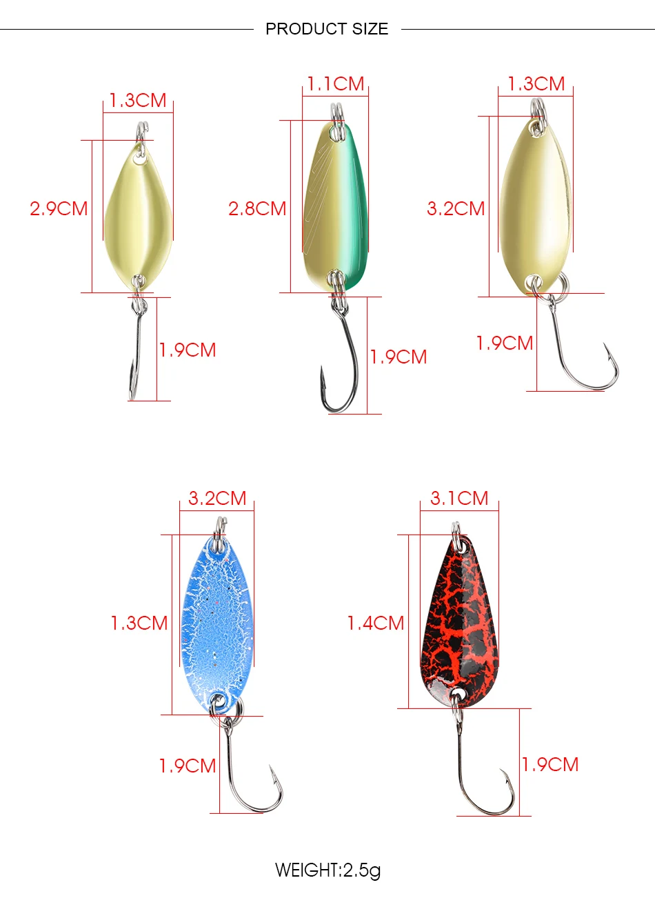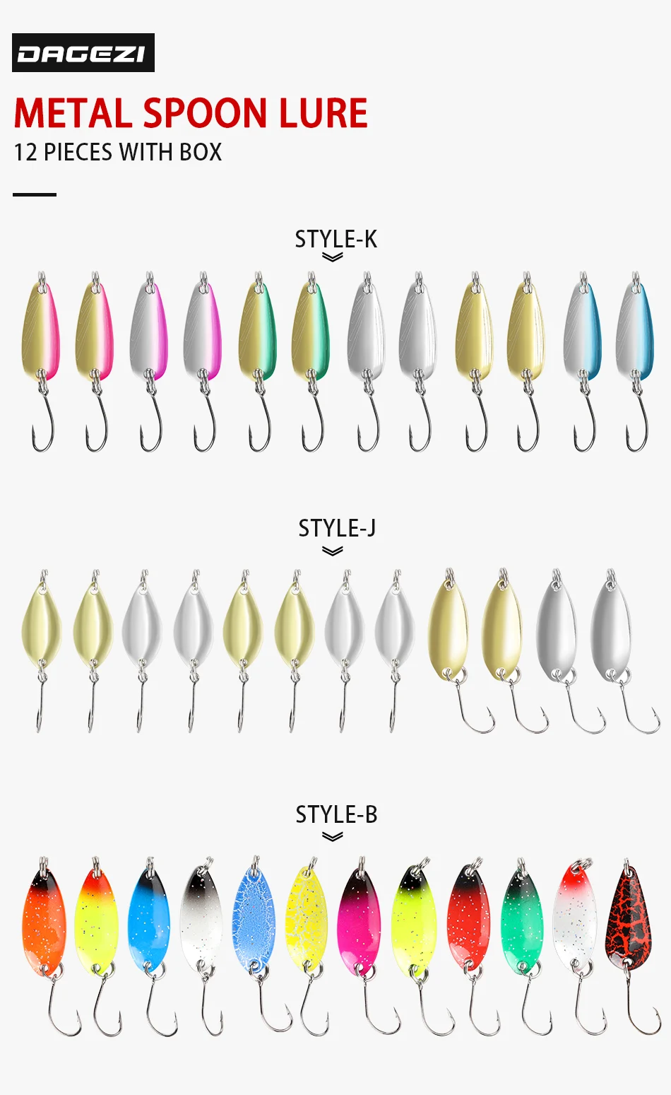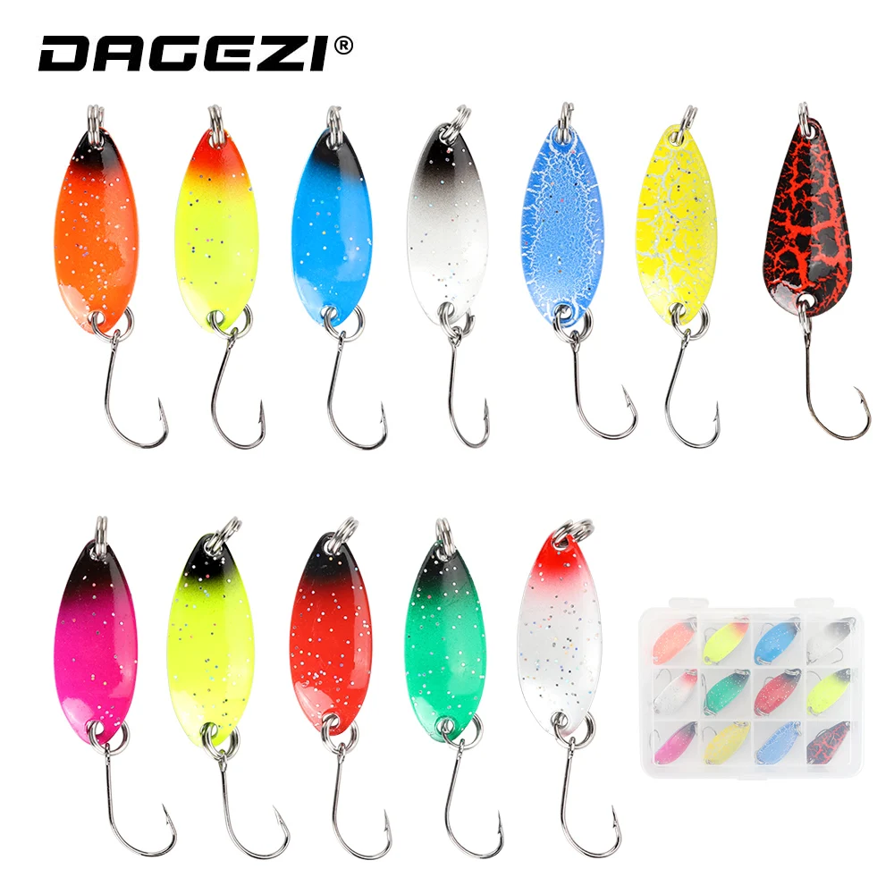 DAGEZI-Juego de Señuelos de Pesca de cuchara de Metal, 12 unids/lote, cebo giratorio, aparejos de Pesca, cebo duro