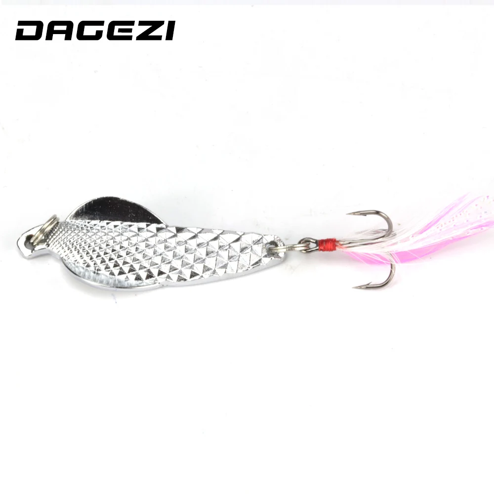 DAGEZI señuelo de Pesca con lentejuelas de Metal, señuelo de cuchara, señuelo de ruido, cebos duros con pluma, anzuelo triple, aparejos de Pesca