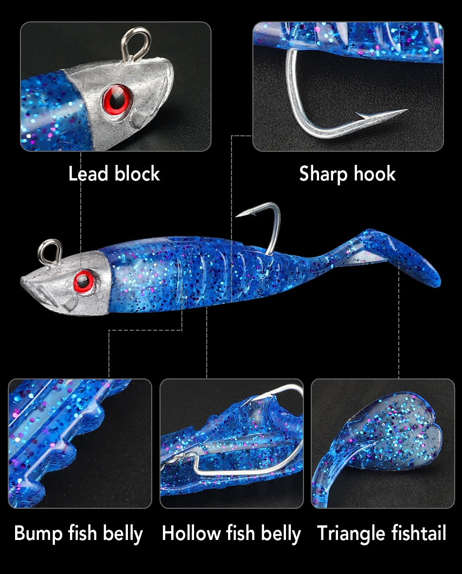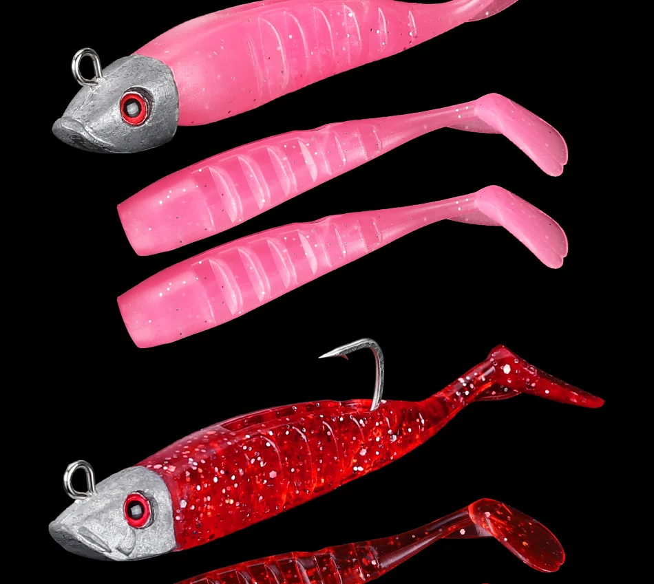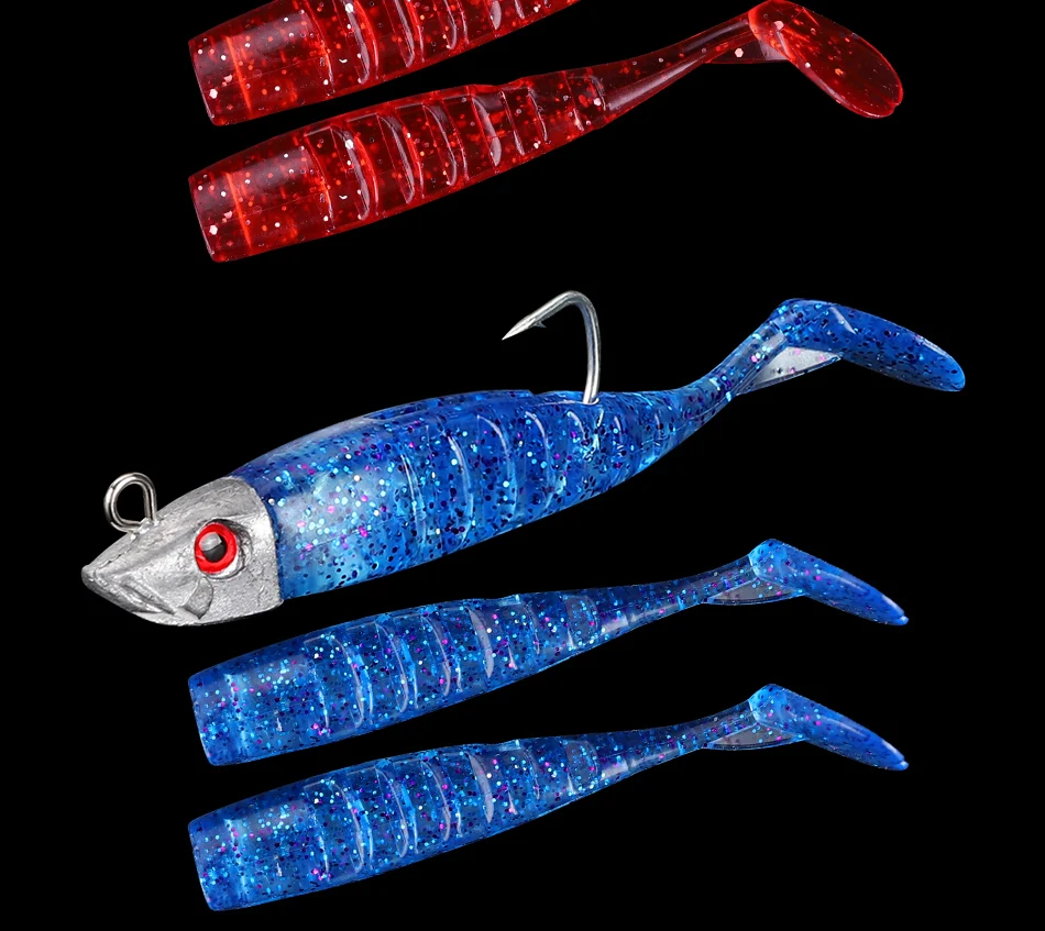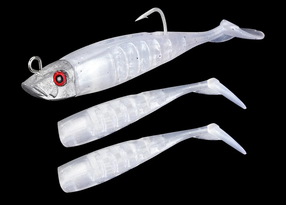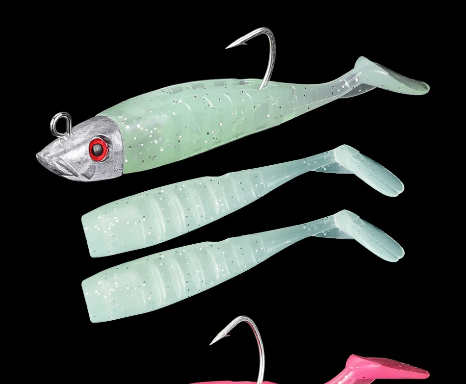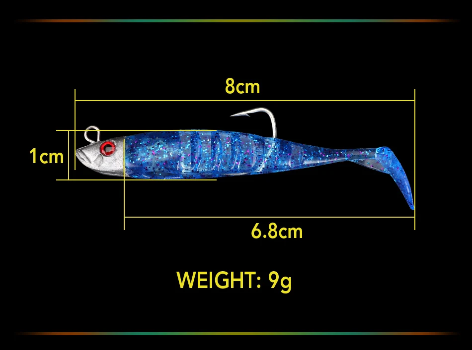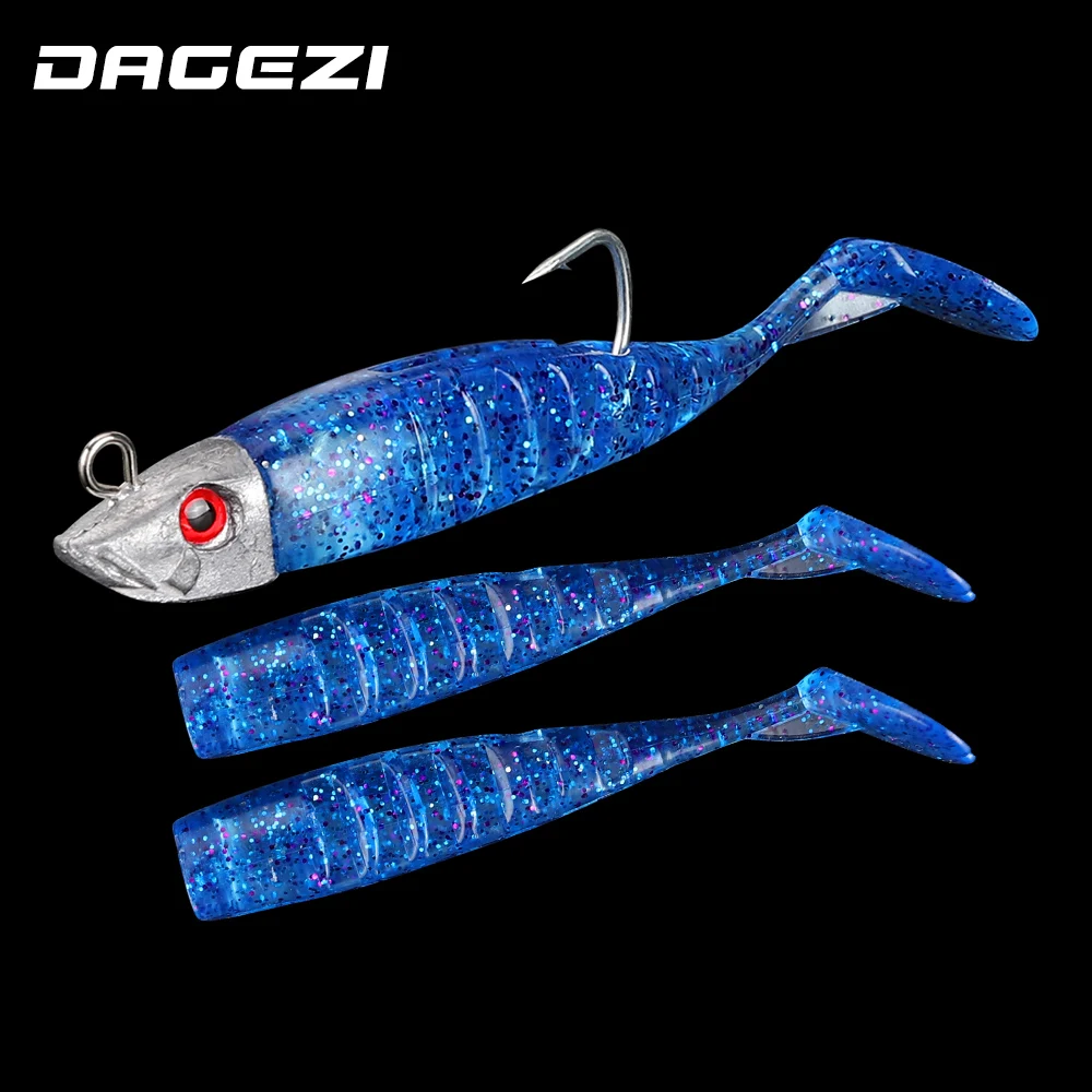 DAGEZI señuelo de pesca suave, anzuelo de cabeza de plantilla de cola en T, cebo Artificial suave, lubina Swimbait de aparejos de pesca de agua salada, 8cm/8,5g