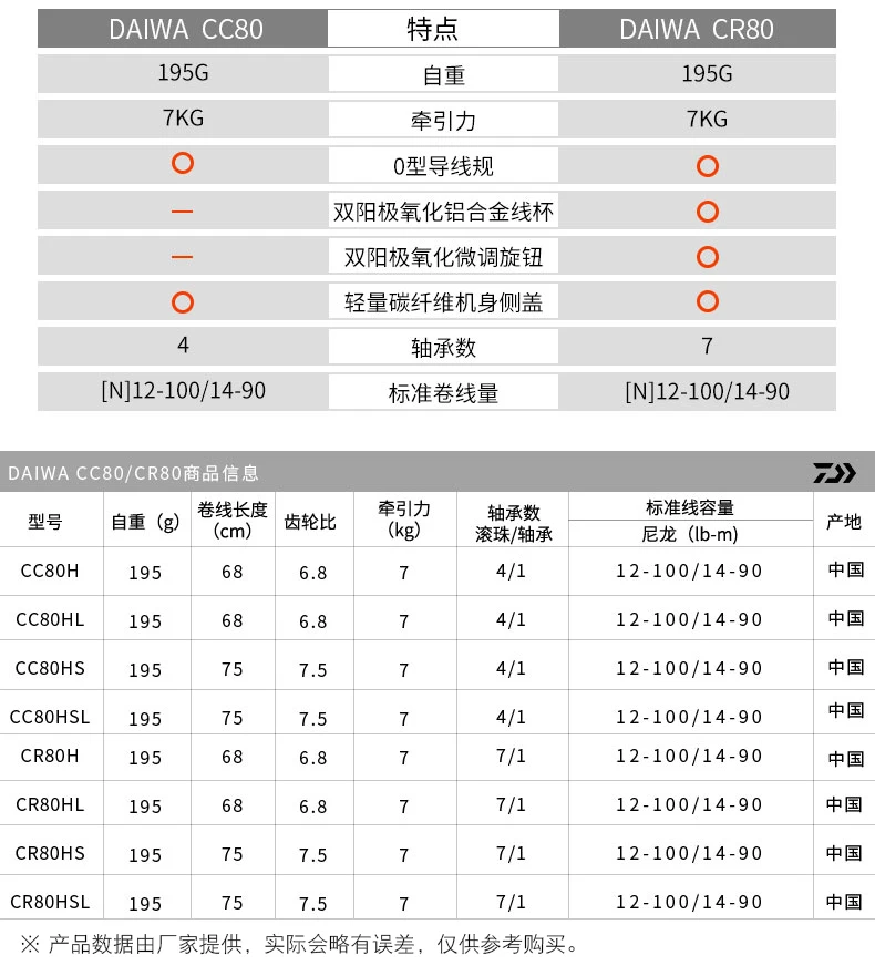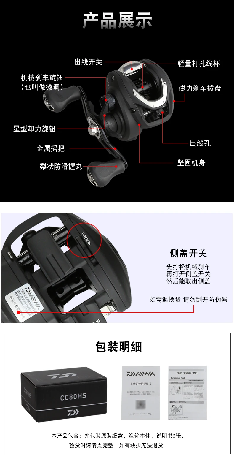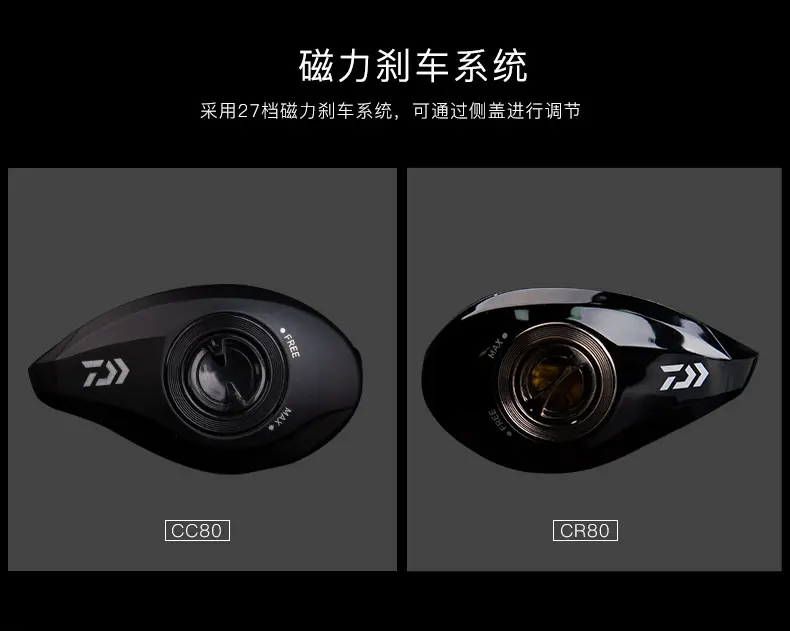 DAIWA-carrete CC80/CR80 Baitcast, arrastre de 7KG, agua de mar, 4 + 1/7 + 1BB, relación de engranaje 6,8/7,5: 1