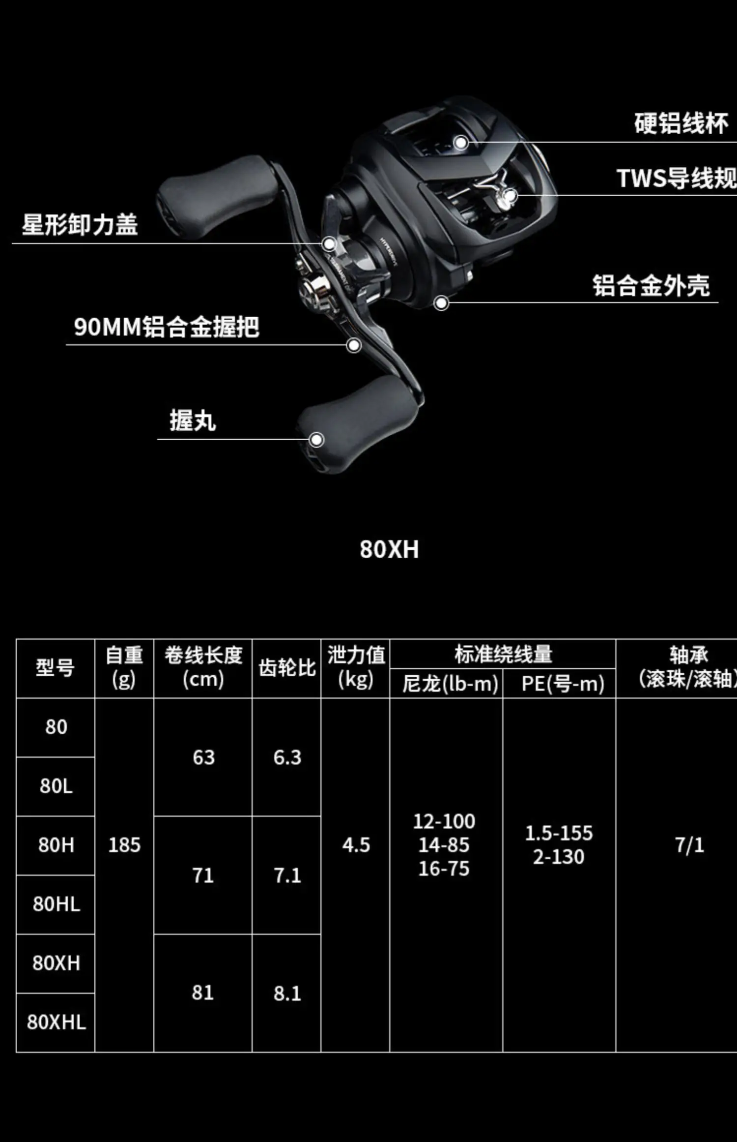 DAIWA-carrete de pesca TATULA TW80, arrastre 7 + 1BB, 2022 KG, peso 4,5g, novedad de 185