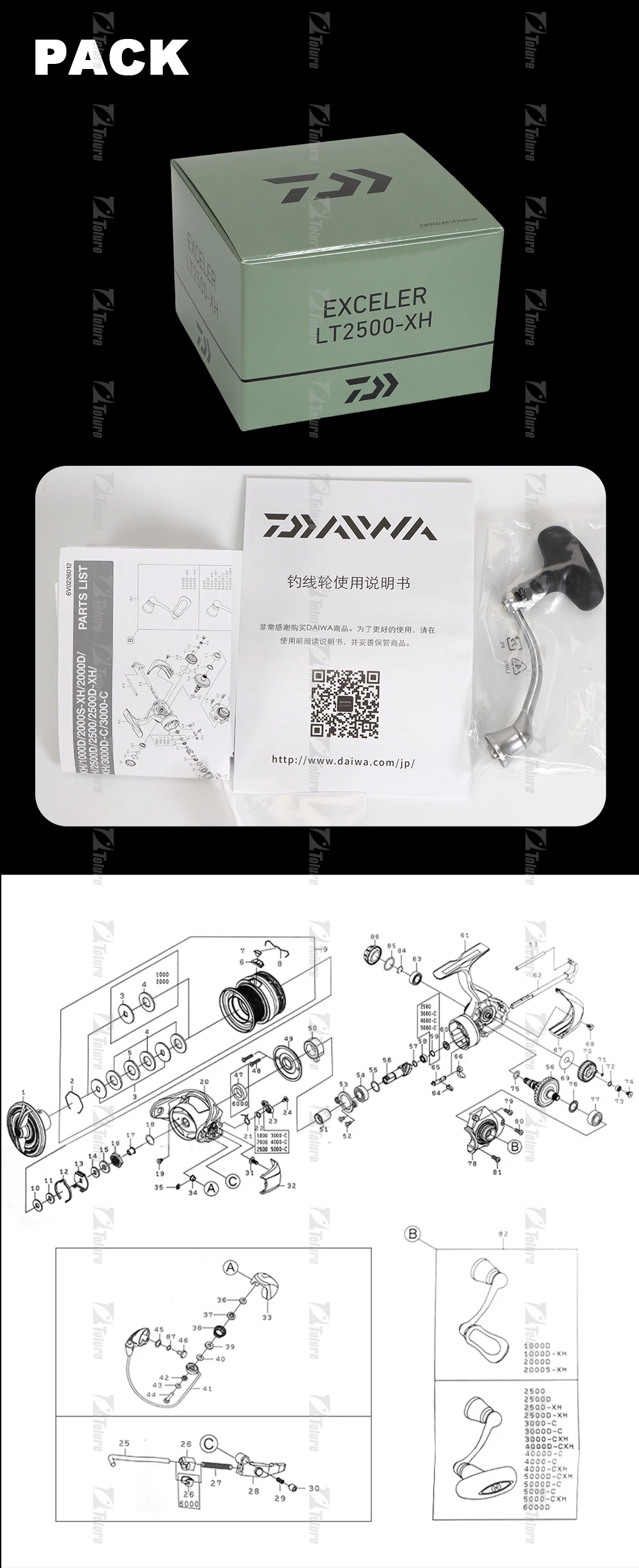 Daiwa Original 2023 nuevo carrete de pesca giratorio Exceler Lt 5/1 rodamientos de bolas 5,2-6,2:1 Rotor/pelota Airdrive Zaion V cuerpo Atd tipo L