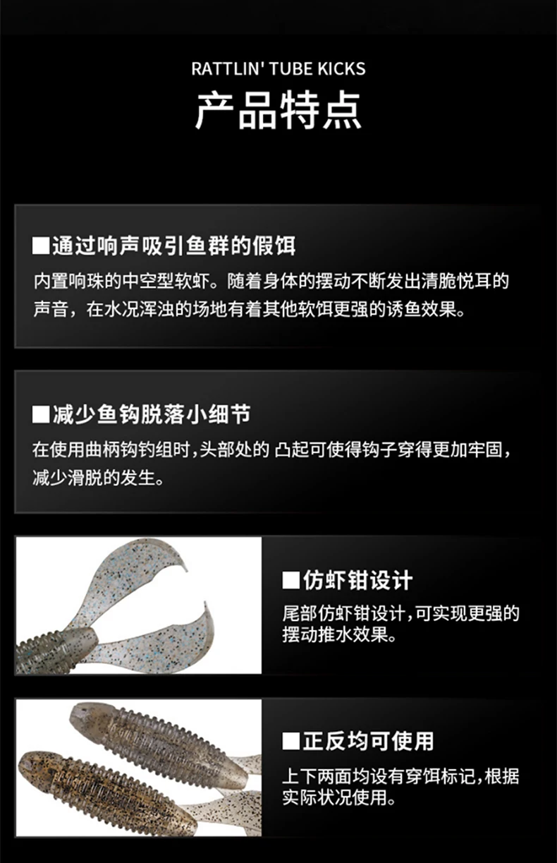 DAIWA RATTLIN TUBE KICKS Señuelos de pesca Señuelos blandos Cebos blandos 3,4 pulgadas Aproximadamente 8,6 cm 6PCS