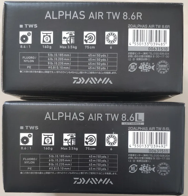 DAIWA ALPHAS AIR TW 6 + 1BB 8,6: 1 Sistema de frenos de aire SV carrete perilla suave relación de engranaje perfil bajo pesca de agua salada carrete Baitcasting