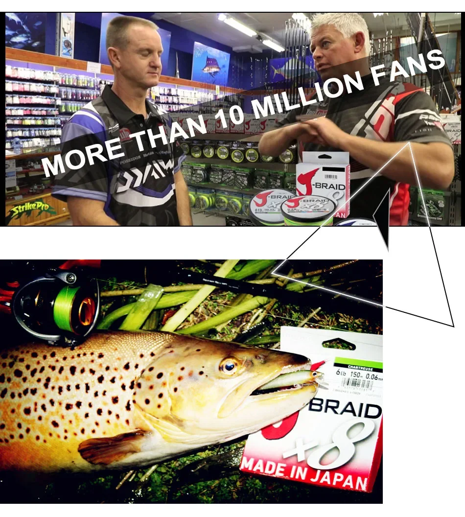 J-Braid pasó por pruebas exhaustivas en todo el mundo.Se probó como una ligera trenza de señuelos "de abajo" hasta el jigging de Deep Ocean y al golpe de GT en los poppers de las islas tropicales.