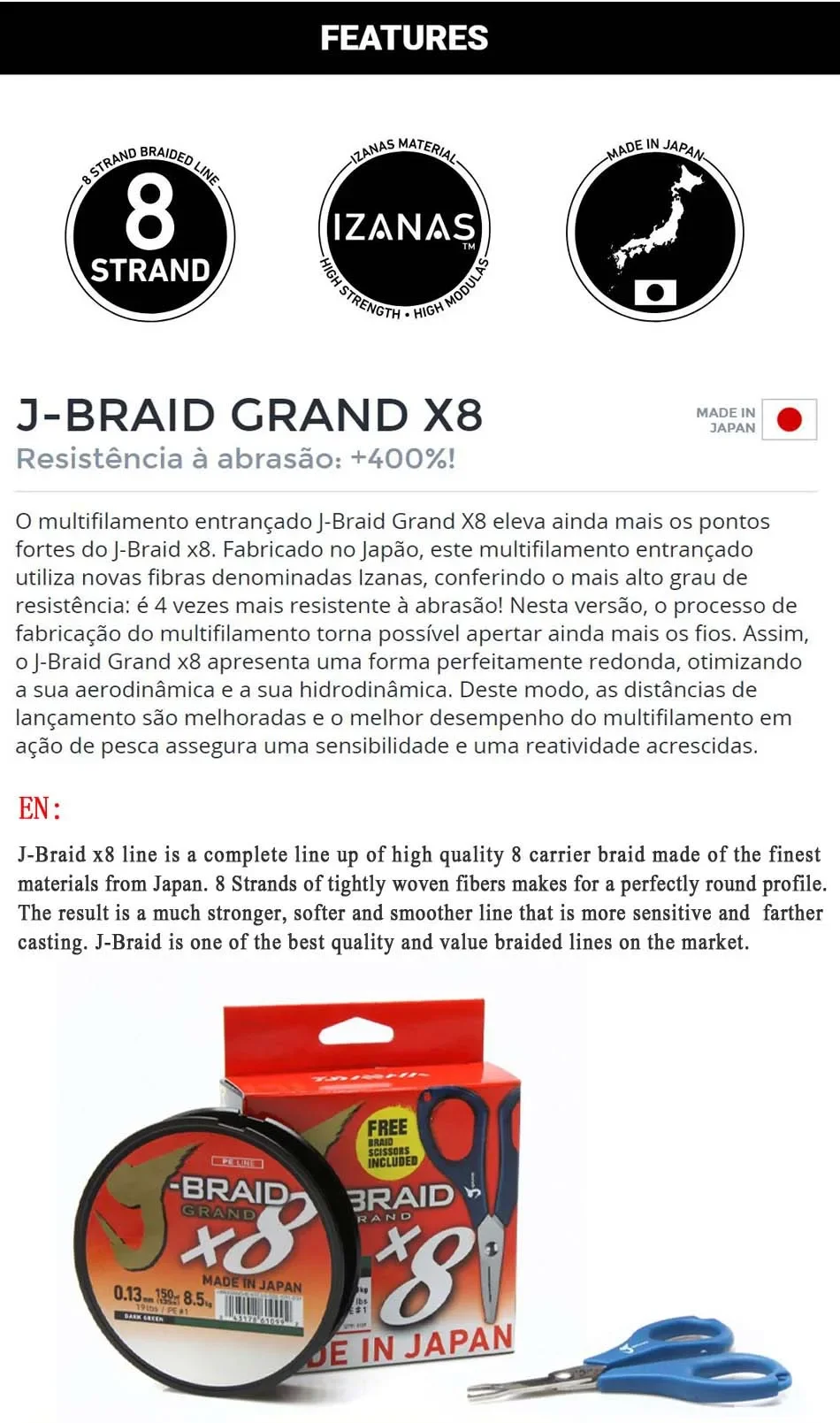 DAIWAPE-Tijeras trenzadas GRAND X8, 300M/330 yardas, línea PE trenzada, 8 soportes, monofilamento japonés