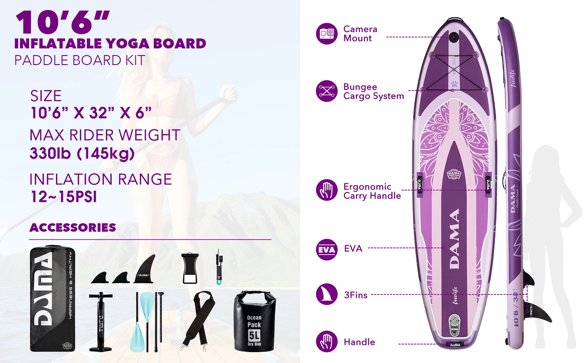 DAMA-Tabla de Paddle inflable con accesorios para adultos, tabla de deportes acuáticos, kayak, 10 '6 ''* 32'' * 6 '', nuevo, 2024