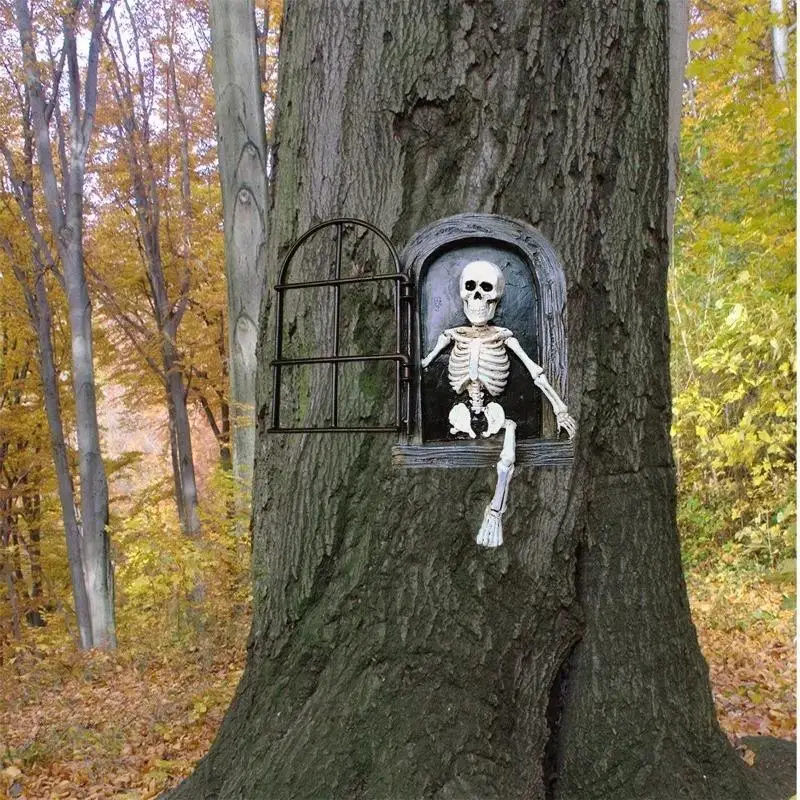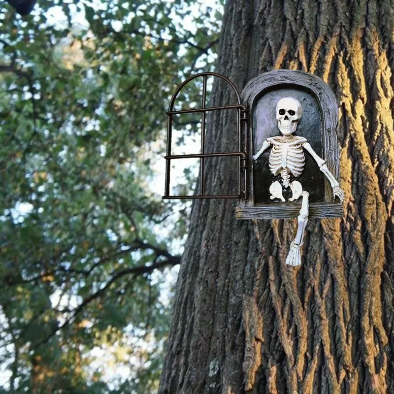Decoración de jardín de Halloween, apertura de ventana, esqueleto de Terror, escultura para exteriores, colgador de resina, artesanías, accesorios de jardín de hadas para el hogar