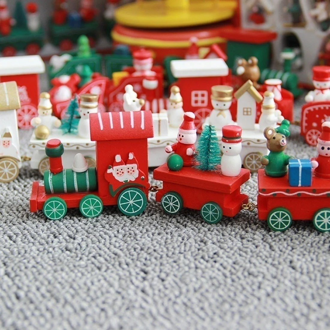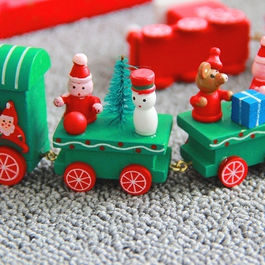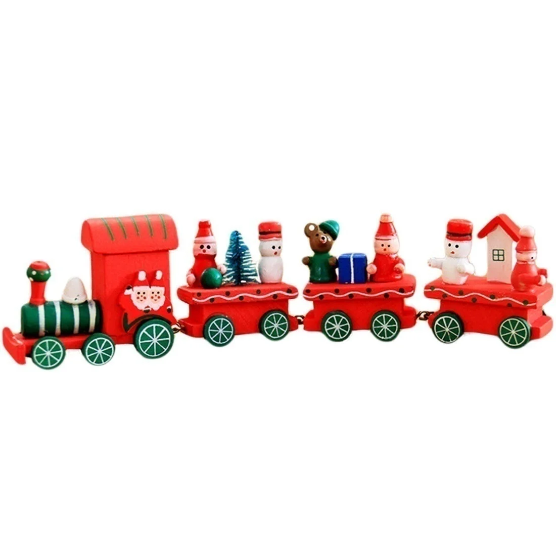 Decoración de tren de madera para el hogar, adornos navideños, suministros de Año Nuevo, precioso tren pequeño