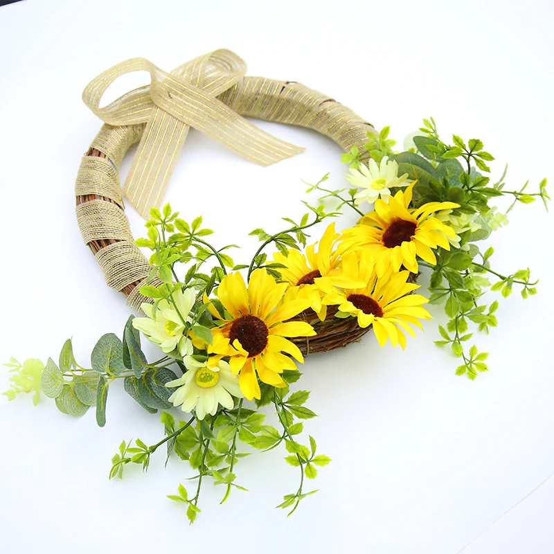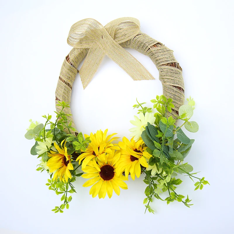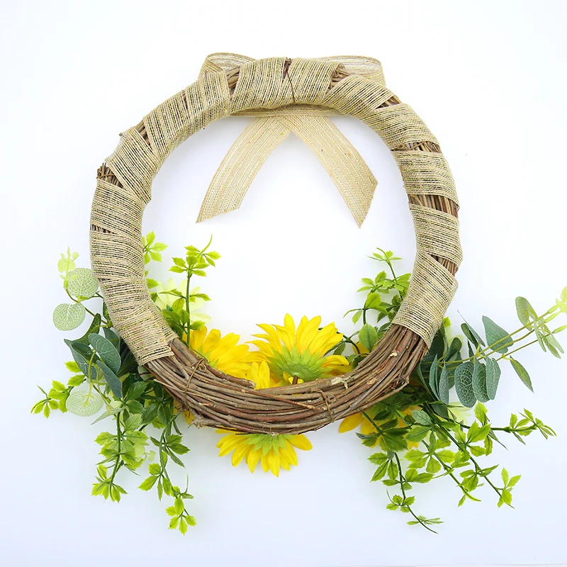 Decoraciones colgantes de Metal de girasol, pétalo de flores suculentas, anillo de bambú para colgar en la pared, accesorio de regalos artificiales para boda y matrimonio