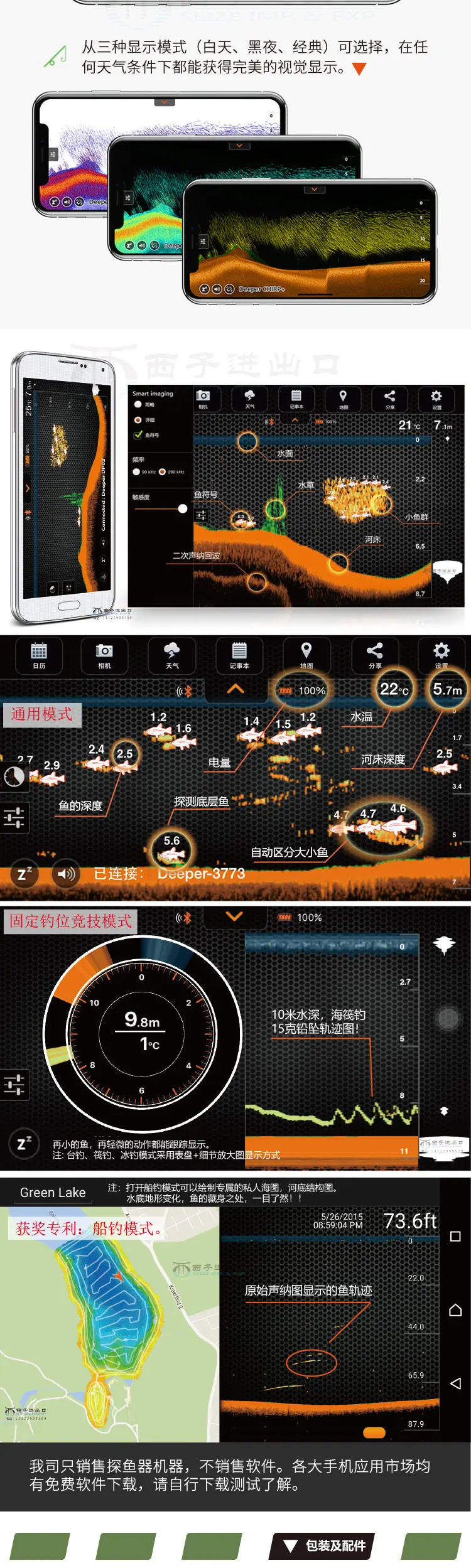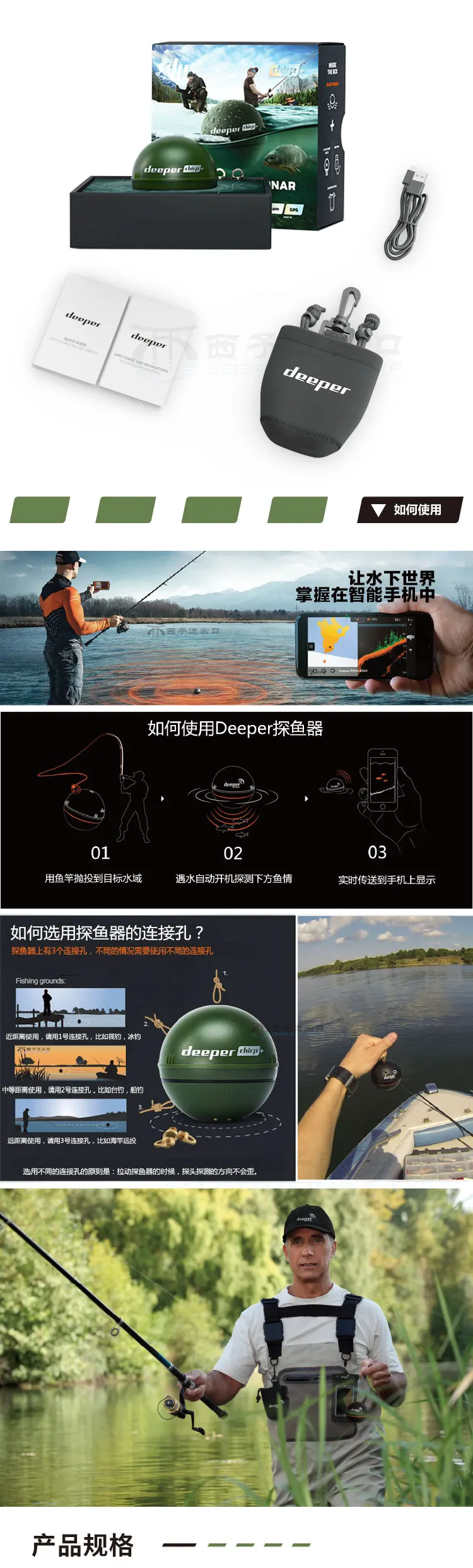 Deeper Smart Sonar CHIRP+ - 100m Detection Fish Finder, 3 Beam Angles USB-C Rechargeable for Fishing