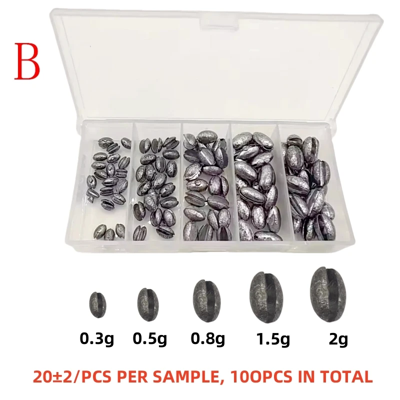 B: Peso: 0,3 g, 0,5 g, 0,8 g, 1,5 g, 2 g (20 piezas cada una)