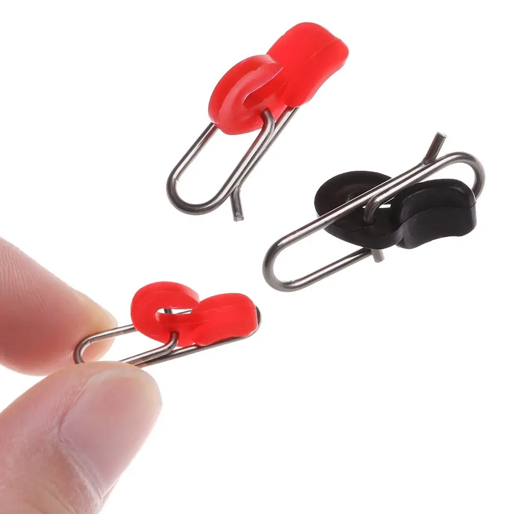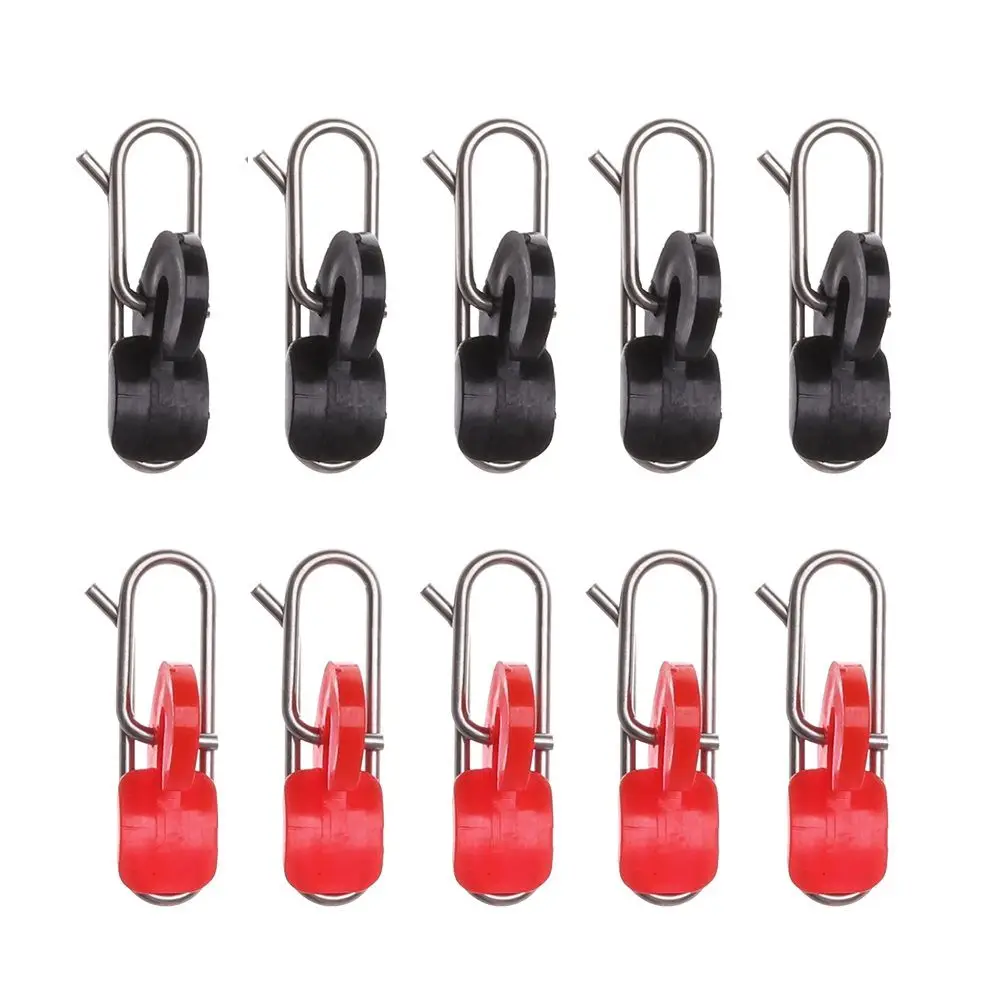 Material: PE + acero inoxidable Color: negro/rojo Tamaño: 16x10x7mm/0,62*0,39*0,27'' Peso neto de 10 piezas: 9 g El paquete incluye: 10 Uds. * Clip de cebo.